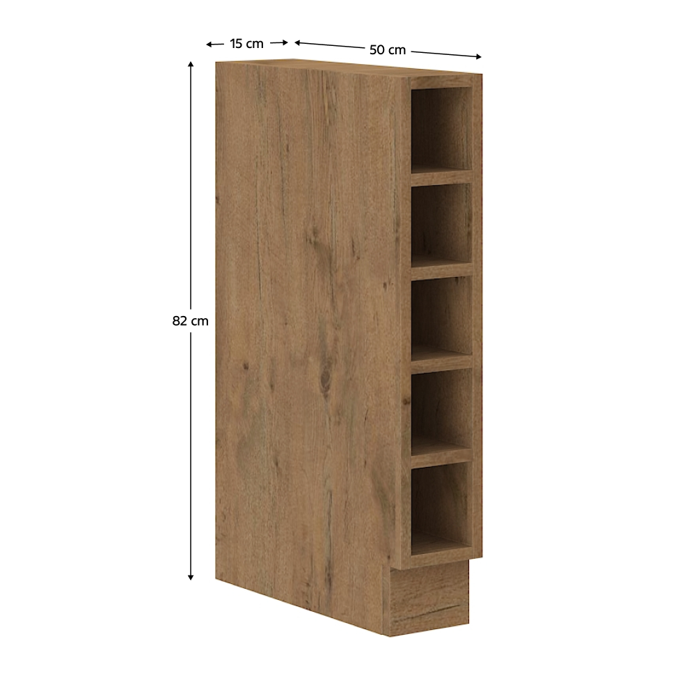 Spodná policová skrinka VEGA 15 D OTW BBMateriál: DTD laminovanáFarba: dub lancelotRozmery (ŠxHxV): 15x50x82 cmDodávané v demonteJe potrebné zakúpiť pracovnú dosku a položiť na skrinkuMožnosť dokúpenia pracovnej dosky dub lancelot v cene 55 Eur/bm. Možnosť dokúpiť univerzálny drez LAY ON.