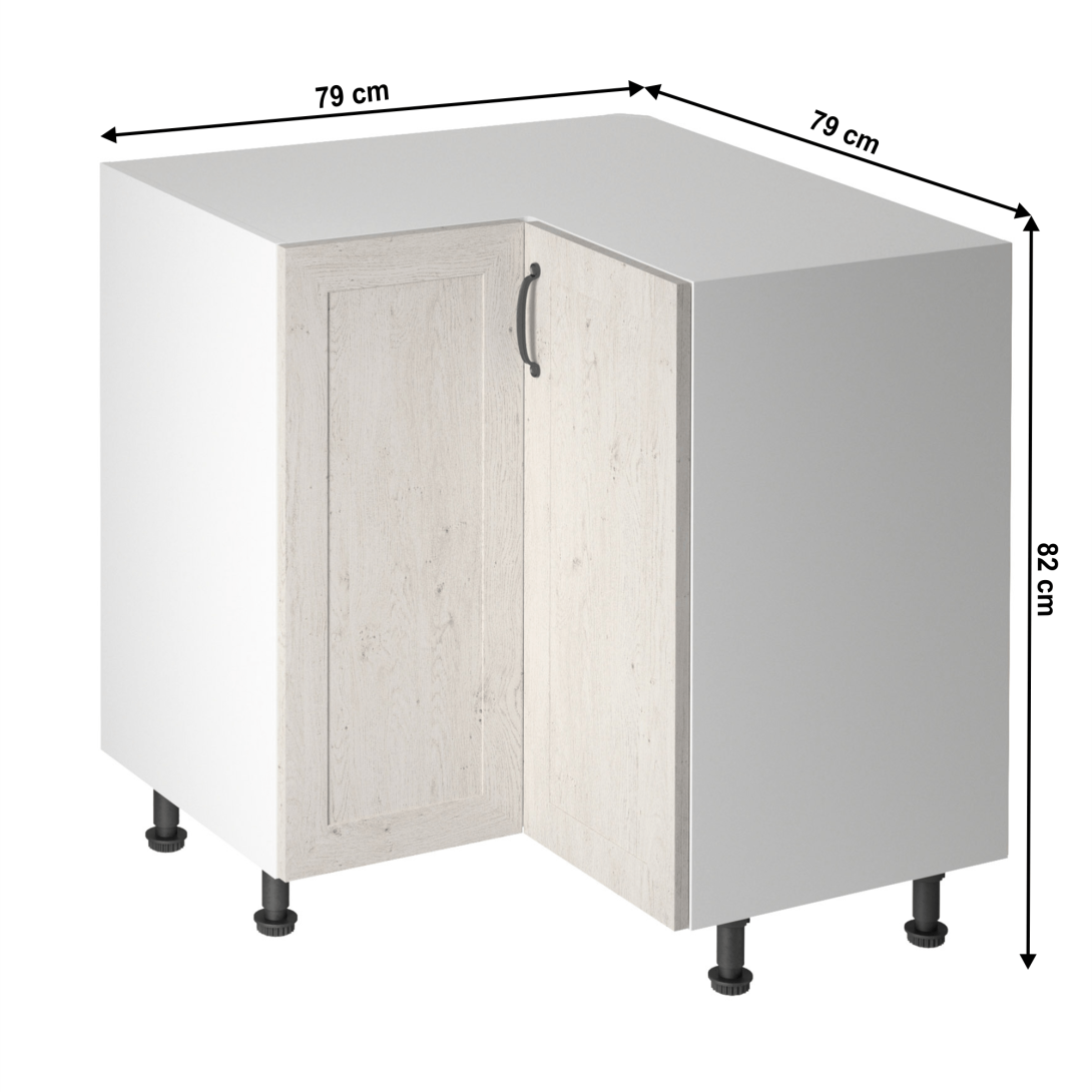 Spodná rohová skrinka, ROYAL D90NMateriál: korpus je vyrobený z kvalitnej laminovanej drevotrieskyFarba: biela/sosna nordickáRozmery ŠxHxV: 79/90x79/90x82 cm Hrúbka materiálu: 15 mmDodávané v demonte. Spodné skrinky ku kuchyni ROYAL sú dodávané bez pracovnej dosky a bez sokla. Pracovnú dosku Dub Porterhouse tmavý možné doobjednať v hrúbke 3,8 cm v cene 59 Eur/1 bm. Ku každej dolnej skrinke, okrem rohových skriniek D25PZ, je potrebné doobjednať aj sokel v prevedení dub divoký v cene 10 ur/1 bm a 2 kusy úchytov na sokel v cene 1 Eur/2 ks. Objednávku vpíšte do poznámky v objednávkovom formulári.