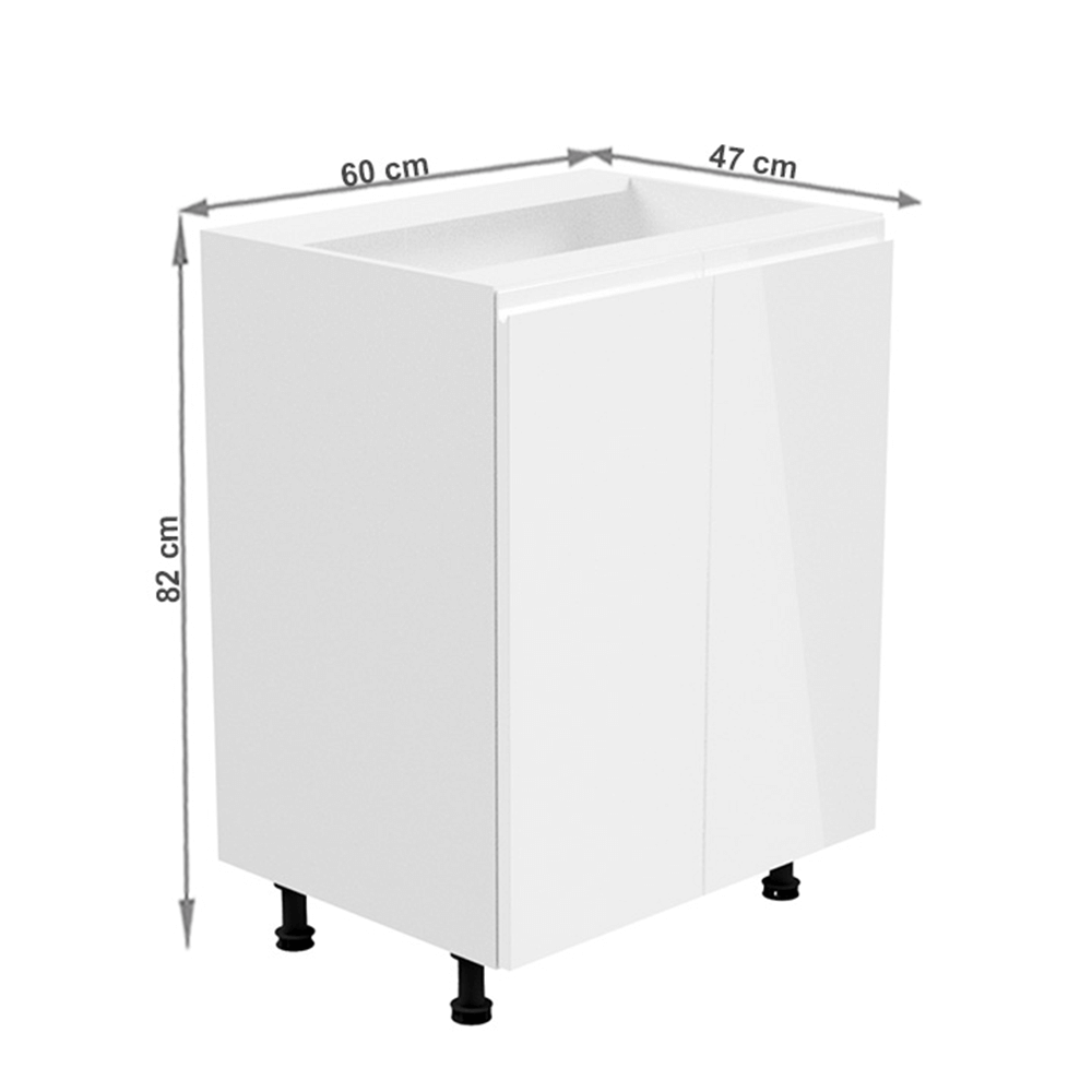 Spodná skrinka, Aurora D602FPrevedenie: DTD laminová/MDFFarba: biela/biela extra vysoký leskRozmery (ŠxHxV): 60x47x82 cmHrúbka materiálu: 15 mmSystém tichého zatvárania dvierokJe nutné objednať potrebný počet ukončení spodnej lištyPracovná doska nie je súčasťou skriniek. Je možné si doobjednať pracovnú dosku v prevedení dub artisan s hrúbkou 38 mm za 56 eur/bm. Možnosť dokúpiť drez LAY ON. Spodné skrinky sú dodávané vrátane dolnej lišty, avšak presný rozmer, ktorý potrebujete, je potrebné uviesť do poznámky v objednávke. Ak rozmer neuvediete, môže sa stať, že vám sokel nebude dodaný. Ku každej dolnej skrinke, okrem D25PZ, je potrebné doobjednať 2 ks úchytok na sokel - cena 1Eur/2ks.