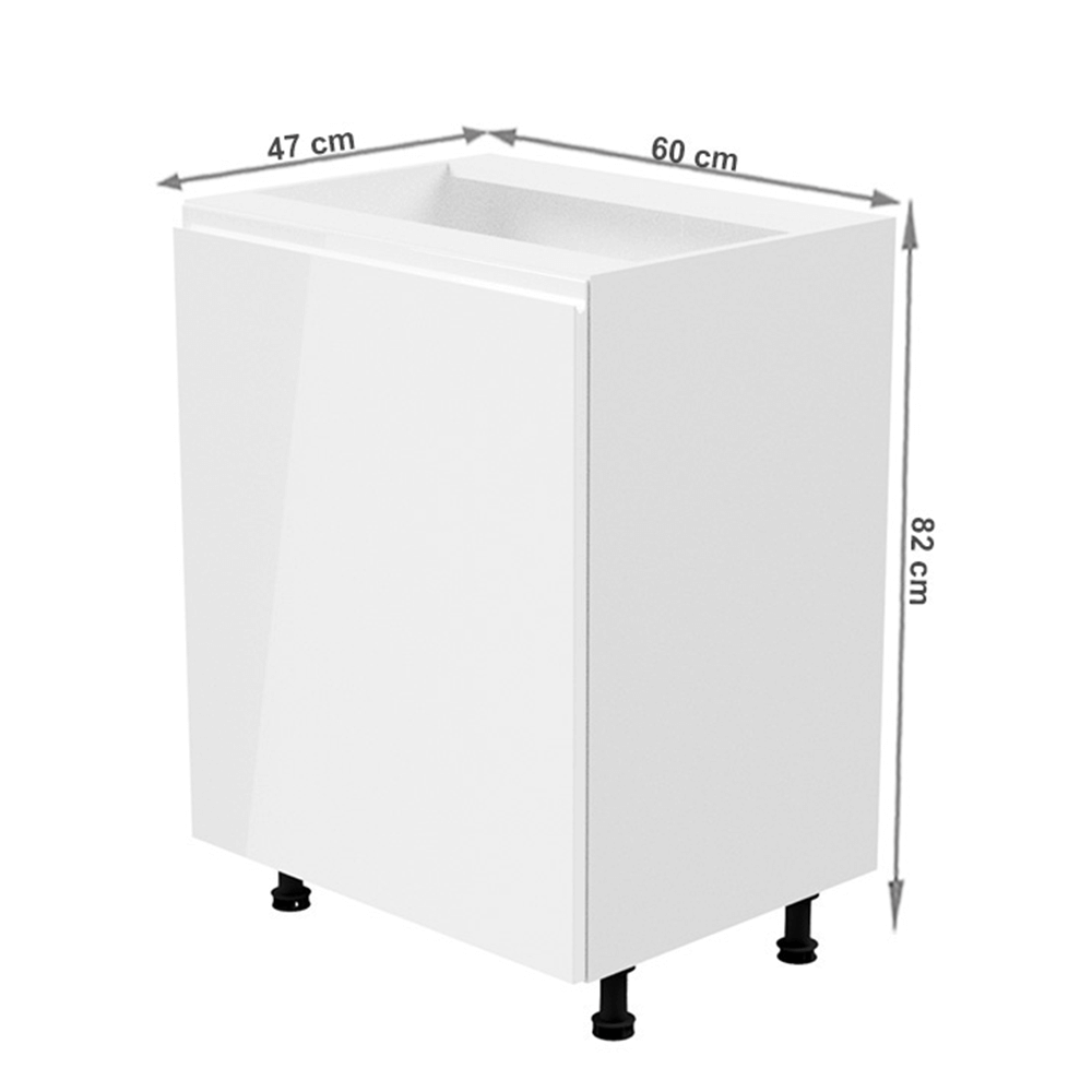 Spodná skrinka, Aurora D601FPrevedenie: DTD laminová/MDFFarba: biela/biela extra vysoký leskRozmery (ŠxHxV): 60x47x82 cmHrúbka materiálu: 15 mmSystém tichého zatvárania dvierokJe nutné objednať potrebný počet ukončení spodnej lištyPracovná doska nie je súčasťou skriniek. Je možné si doobjednať pracovnú dosku v prevedení dub artisan s hrúbkou 38 mm za 56 eur/bm. Možnosť dokúpiť drez LAY ON. Spodné skrinky sú dodávané vrátane dolnej lišty, avšak presný rozmer, ktorý potrebujete, je potrebné uviesť do poznámky v objednávke. Ak rozmer neuvediete, môže sa stať, že vám sokel nebude dodaný. Ku každej dolnej skrinke, okrem D25PZ, je potrebné doobjednať 2 ks úchytok na sokel - cena 1Eur/2ks.