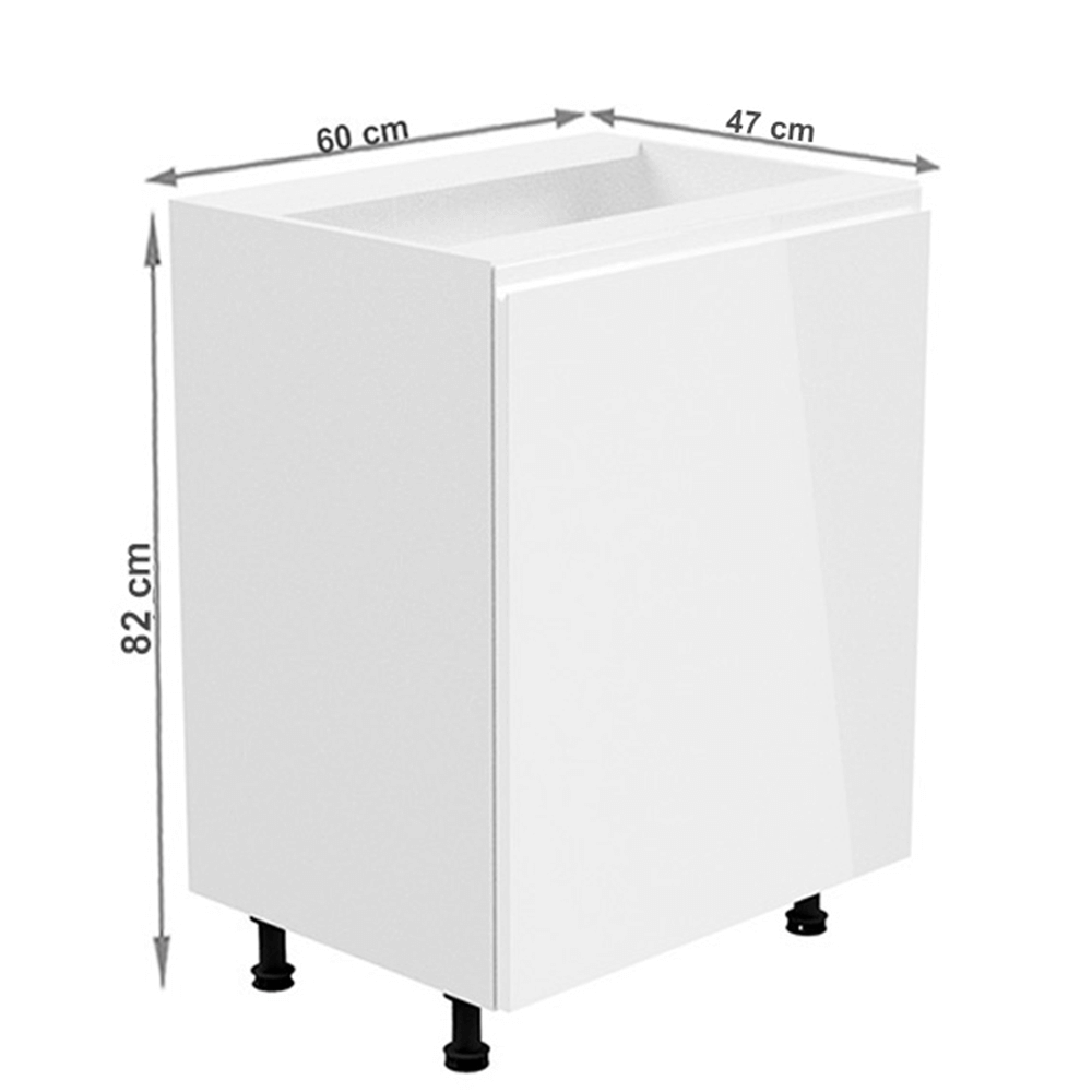 Spodná skrinka, Aurora D601FPrevedenie: DTD laminová/MDFFarba: biela/biela extra vysoký leskRozmery (ŠxHxV): 60x47x82 cmHrúbka materiálu: 15 mmJe nutné objednať potrebný počet ukončení spodnej lištySystém tichého zatvárania dvierokPracovná doska nie je súčasťou skriniek. Je možné si doobjednať pracovnú dosku v prevedení dub artisan s hrúbkou 38 mm za 56 eur/bm. Možnosť dokúpiť drez LAY ON. Spodné skrinky sú dodávané vrátane dolnej lišty, avšak presný rozmer, ktorý potrebujete, je potrebné uviesť do poznámky v objednávke. Ak rozmer neuvediete, môže sa stať, že vám sokel nebude dodaný. Ku každej dolnej skrinke, okrem D25PZ, je potrebné doobjednať 2 ks úchytok na sokel - cena 1Eur/2ks.