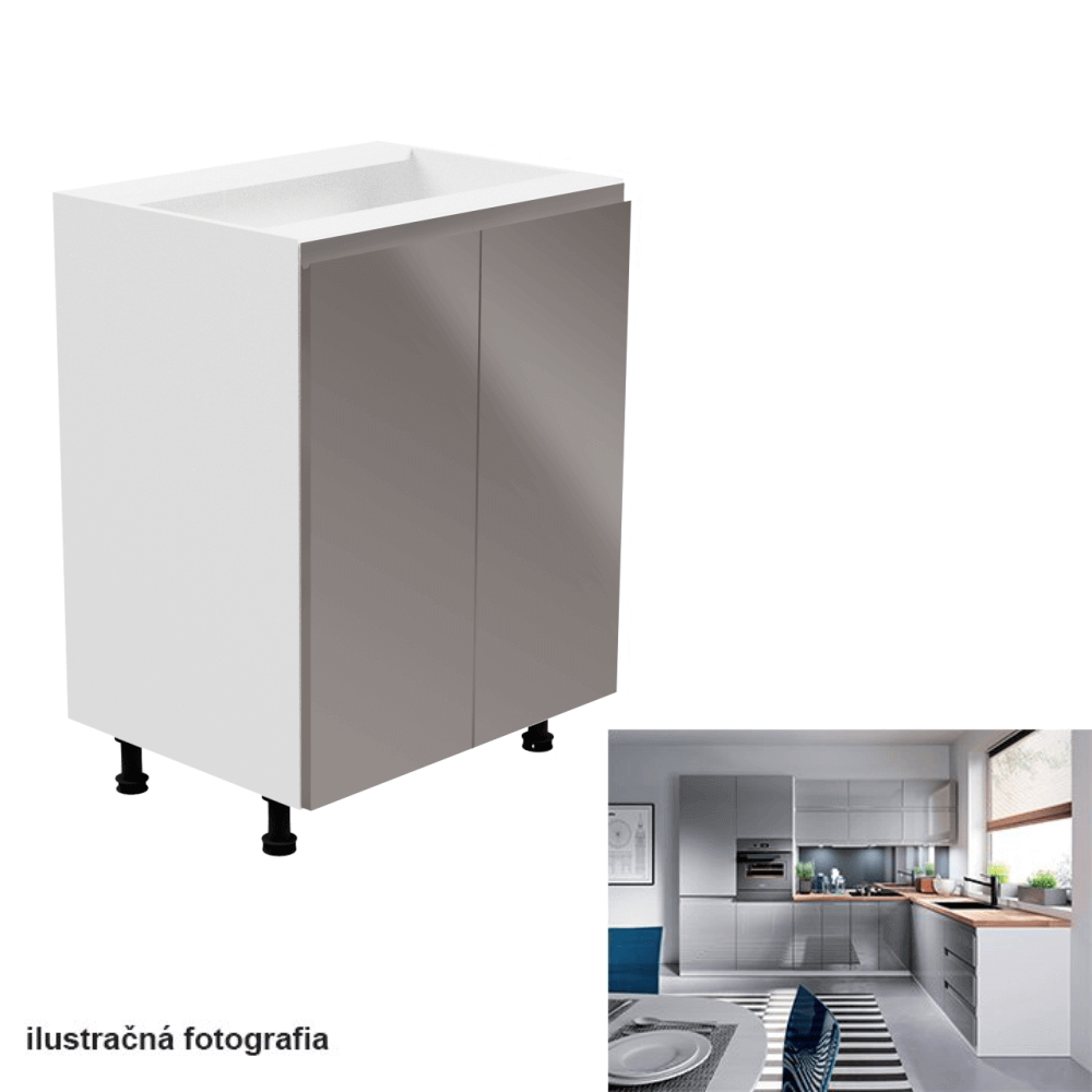 Spodná skrinka, Aurora D602FPrevedenie: DTD laminová/MDFFarba: biela/sivá extra vysoký leskRozmery (ŠxHxV): 60x47x82 cmHrúbka materiálu: 15 mmSystém tichého zatvárania dvierokJe nutné objednať potrebný počet ukončení spodnej lištyPracovná doska nie je súčasťou skriniek. Je možné si doobjednať pracovnú dosku v prevedení dub artisan s hrúbkou 38 mm za 56 eur/bm. Možnosť dokúpiť drez LAY ON. Spodné skrinky sú dodávané vrátane dolnej lišty, avšak presný rozmer, ktorý potrebujete, je potrebné uviesť do poznámky v objednávke. Ak rozmer neuvediete, môže sa stať, že vám sokel nebude dodaný. Ku každej dolnej skrinke, okrem D25PZ, je potrebné doobjednať 2 ks úchytok na sokel - cena 1Eur/2ks.
