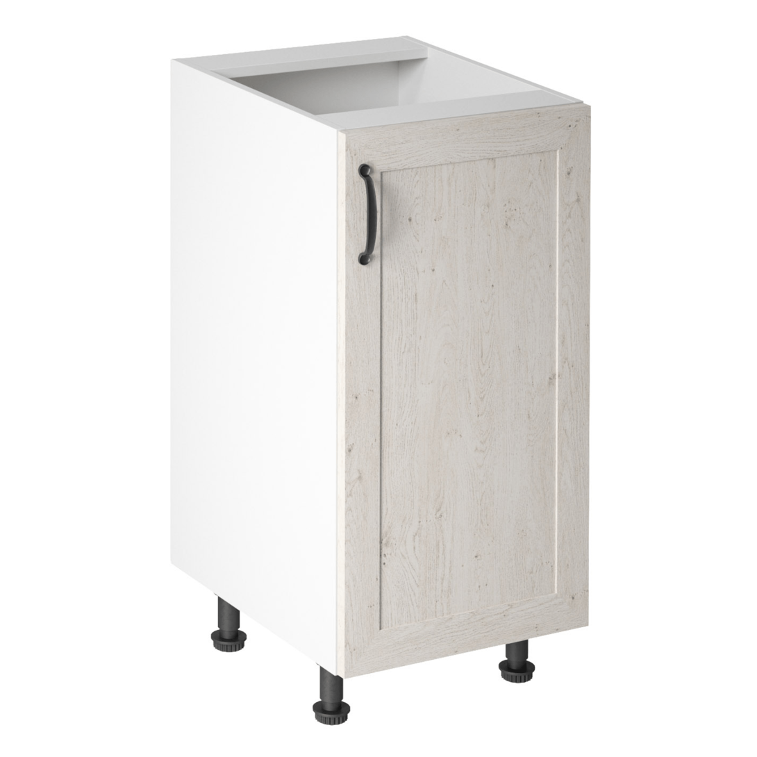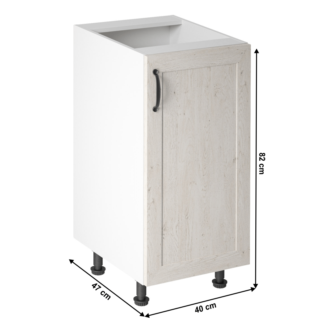 Spodná skrinka s dvierkami s policou, pravá, ROYAL D40Materiál: korpus je vyrobený z kvalitnej laminovanej drevotrieskyFarba: biela/sosna nordickáRozmery ŠxHxV: 40x47/60x82 cm Hrúbka materiálu: 15 mmSystém tichého zatvárania dvierokDodávané v demonte.Spodné skrinky ku kuchyni ROYAL sú dodávané bez pracovnej dosky a bez sokla. Pracovnú dosku Dub Porterhouse tmavý možné doobjednať v hrúbke 3,8 cm v cene 59 Eur/1 bm. Ku každej dolnej skrinke, okrem rohových skriniek D25PZ, je potrebné doobjednať aj sokel v prevedení dub divoký v cene 10 ur/1 bm a 2 kusy úchytov na sokel v cene 1 Eur/2 ks. Objednávku vpíšte do poznámky v objednávkovom formulári.