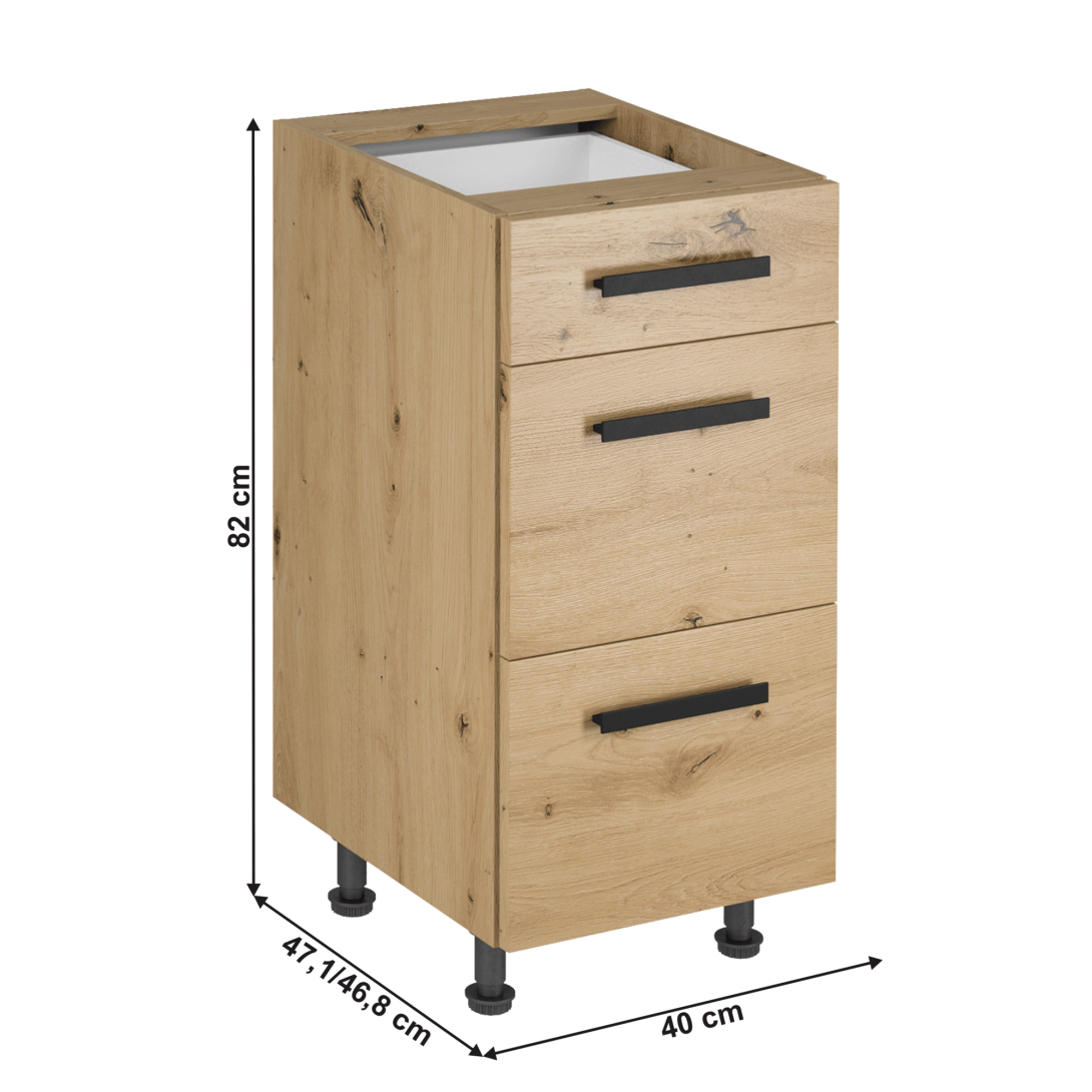 Materiál: DTD laminovanáFarba: dub artisanRozmery (ŠxHxV): 40x47,1/46,8x82 cmHrúbka materiálu dvierka (dub artisan): 1,5 cmHrúbka materiálu dvierka (sivá MDF): 1,8 cmOtváranie pomocou úchytiekBez pracovnej doskyBez spodnej lištyDodávané v demonteCena sektorových skriniek je uvádzaná bez pracovnej dosky a spodnej lišty. Cena za pracovnú dosku dub artisan je 56 Eur/bm - hrúbka 38 mm, cena za pracovnú dosku čierny vulkán je 59 Eur/bm - hrúbka 38 mm. Možnosť dokúpenia spodnej lišty dub artisan v rozmere 1 m za cenu 10 Eur alebo v rozmere 2 m za cenu 17 Eur. Ku každej dolnej skrinke je potrebné doobjednať 2 ks úchytov na sokel cena 1 Eur/2 ks. Pri skrinkách D60S3 a D40S3 je potrebné si vybrať skrinku s úchytkou alebo systémom Push Open.