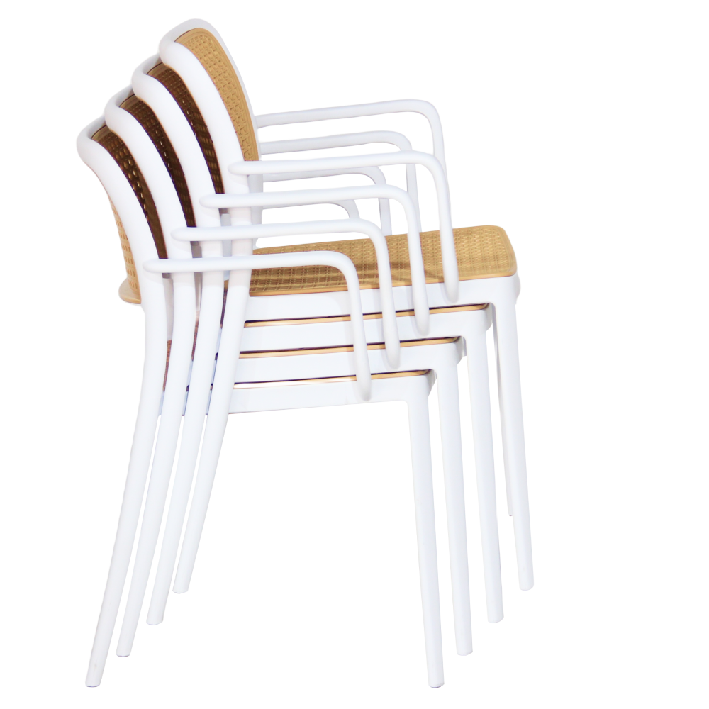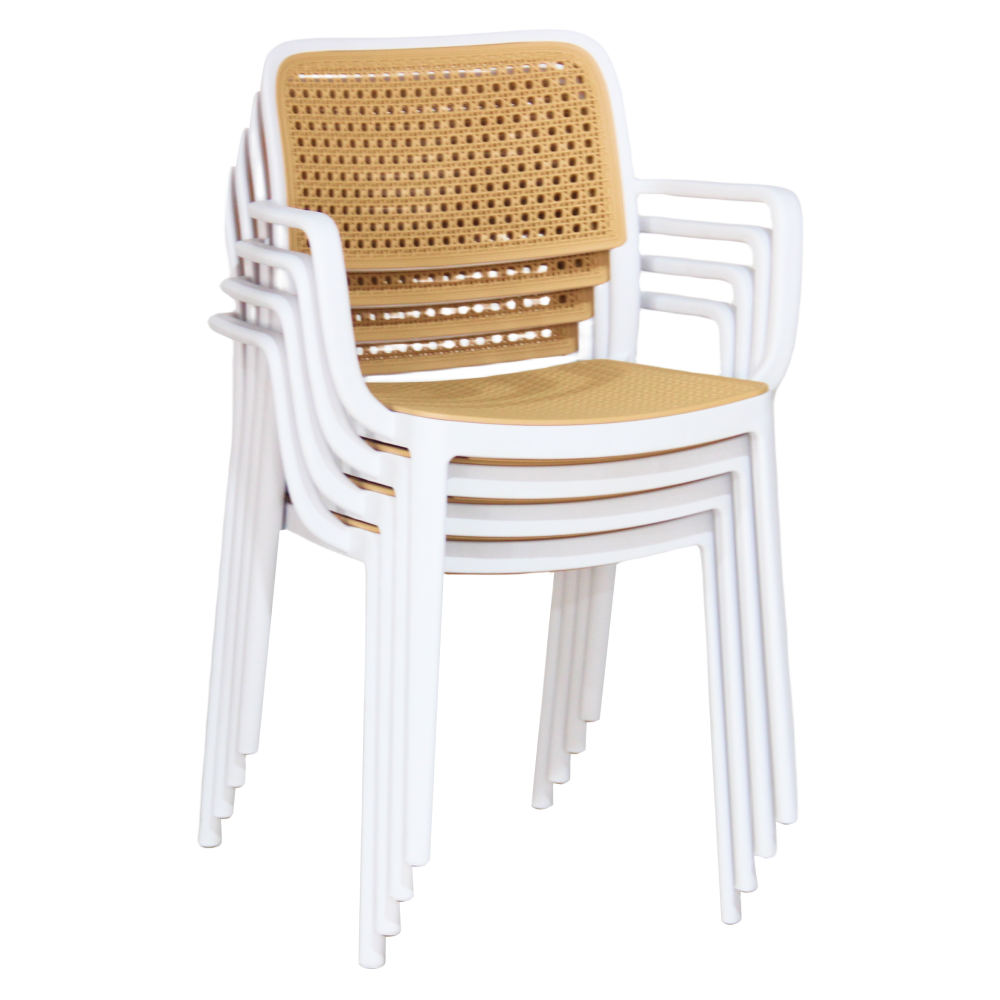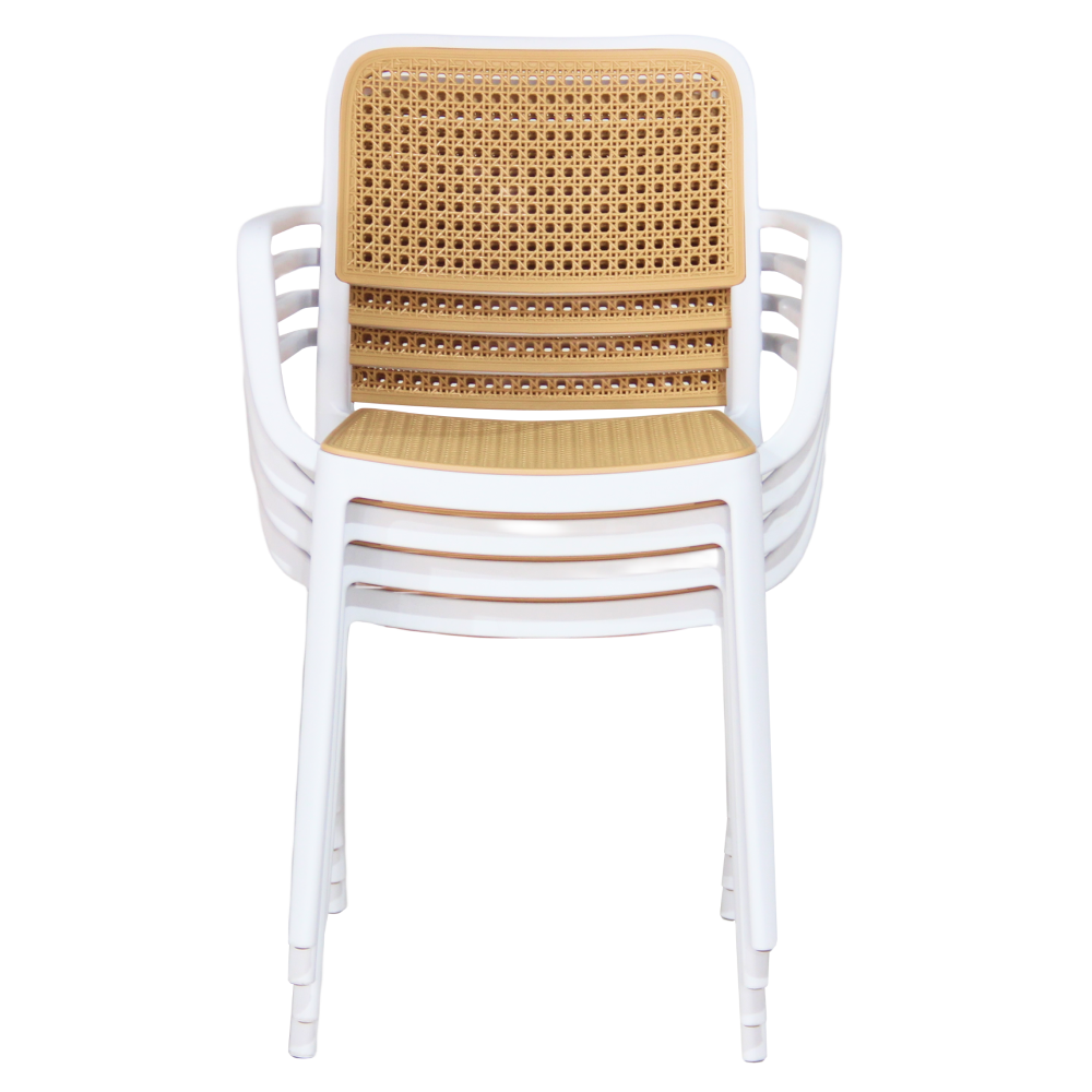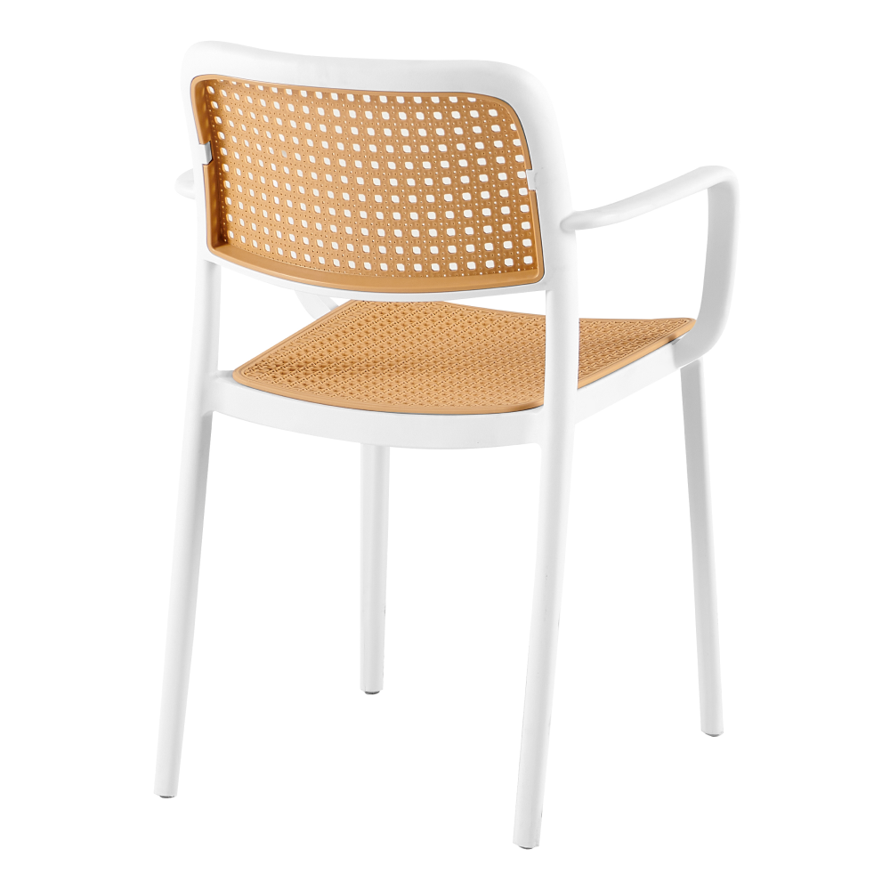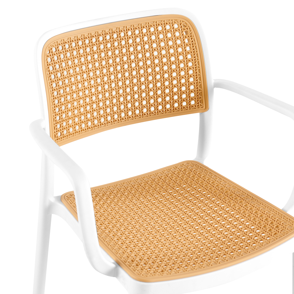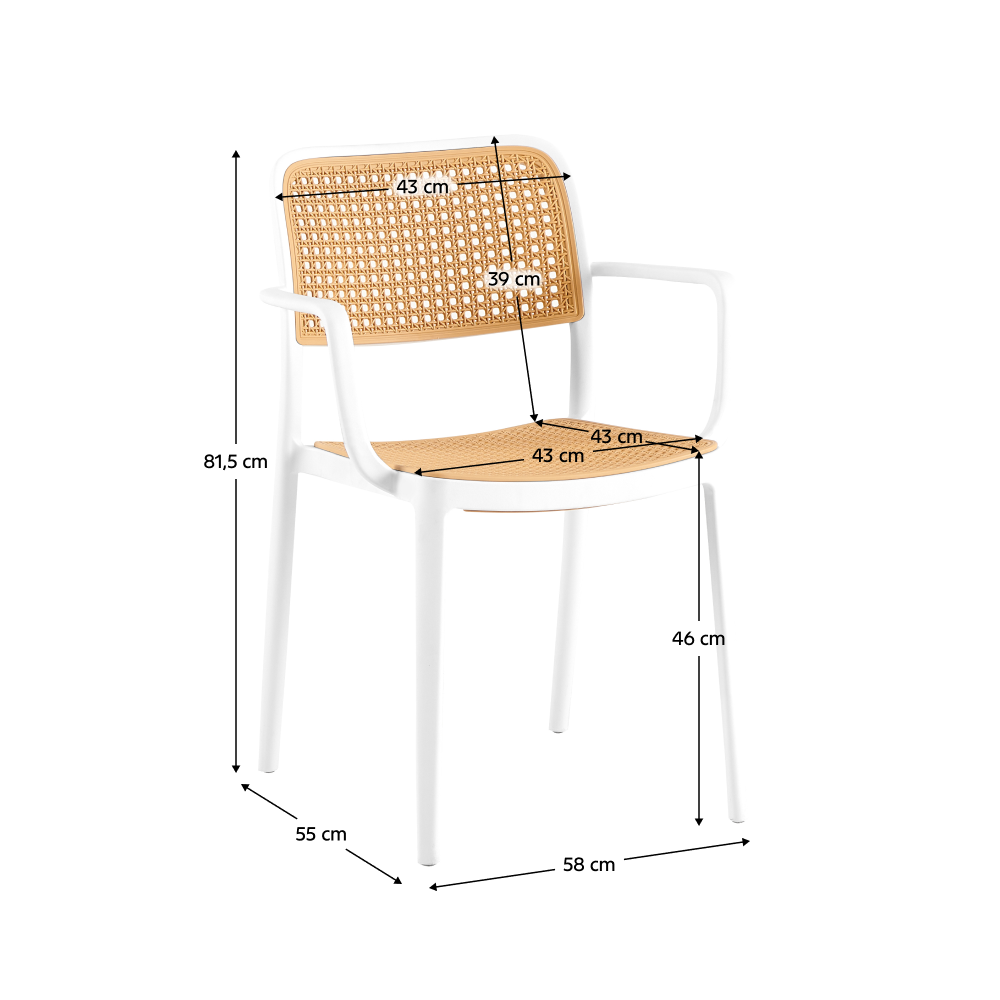 Materiál: plastFarba: biela/béžováRozmery (ŠxHxV): 58x55x81,5 cmVýška sedu: 46 cmHĺbka sedu: 43 cmŠírka sedenia: 43 cmVýška chrbta: 39 cmŠírka chrbta: 43 cmNosnosť: 100 kgHmotnosť: 5,25kgStohovateľnáVhodná do interiéru aj exteriéruDodávané v monte