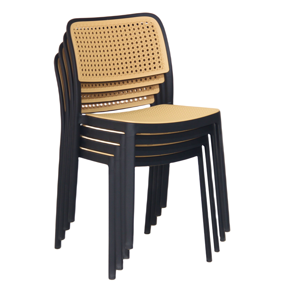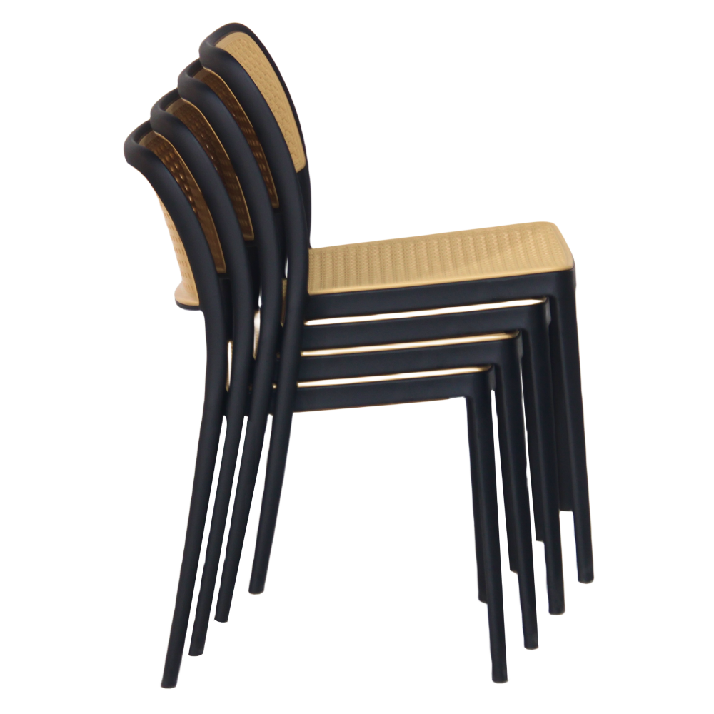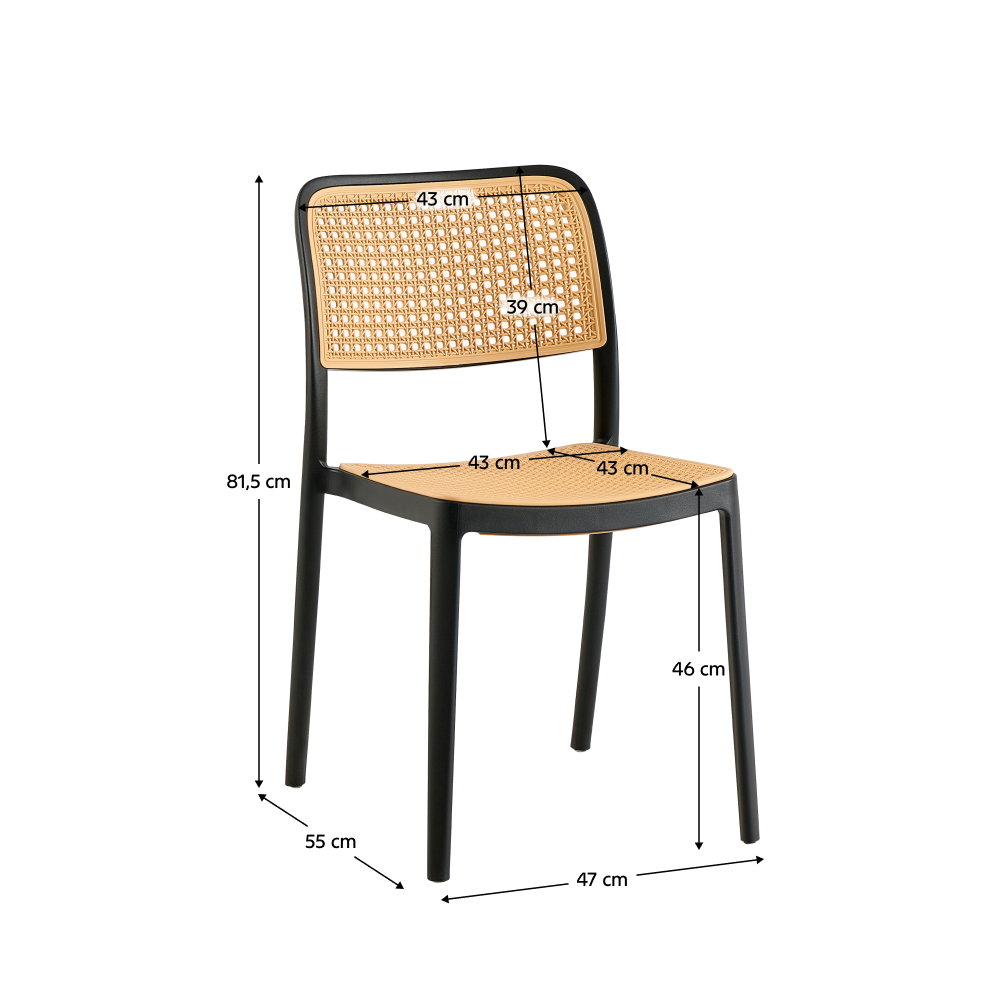 Materiál: plastFarba: čierna/béžováRozmery (ŠxHxV): 47x55x81,5 cmVýška sedu: 46 cmHĺbka sedu: 43 cmŠírka sedenia: 43 cmVýška chrbta: 39 cmŠírka chrbta: 43 cmNosnosť: 100 kgHmotnosť: 4,7 kgStohovateľnáVhodná do interiéru aj exteriéruDodávané v monte