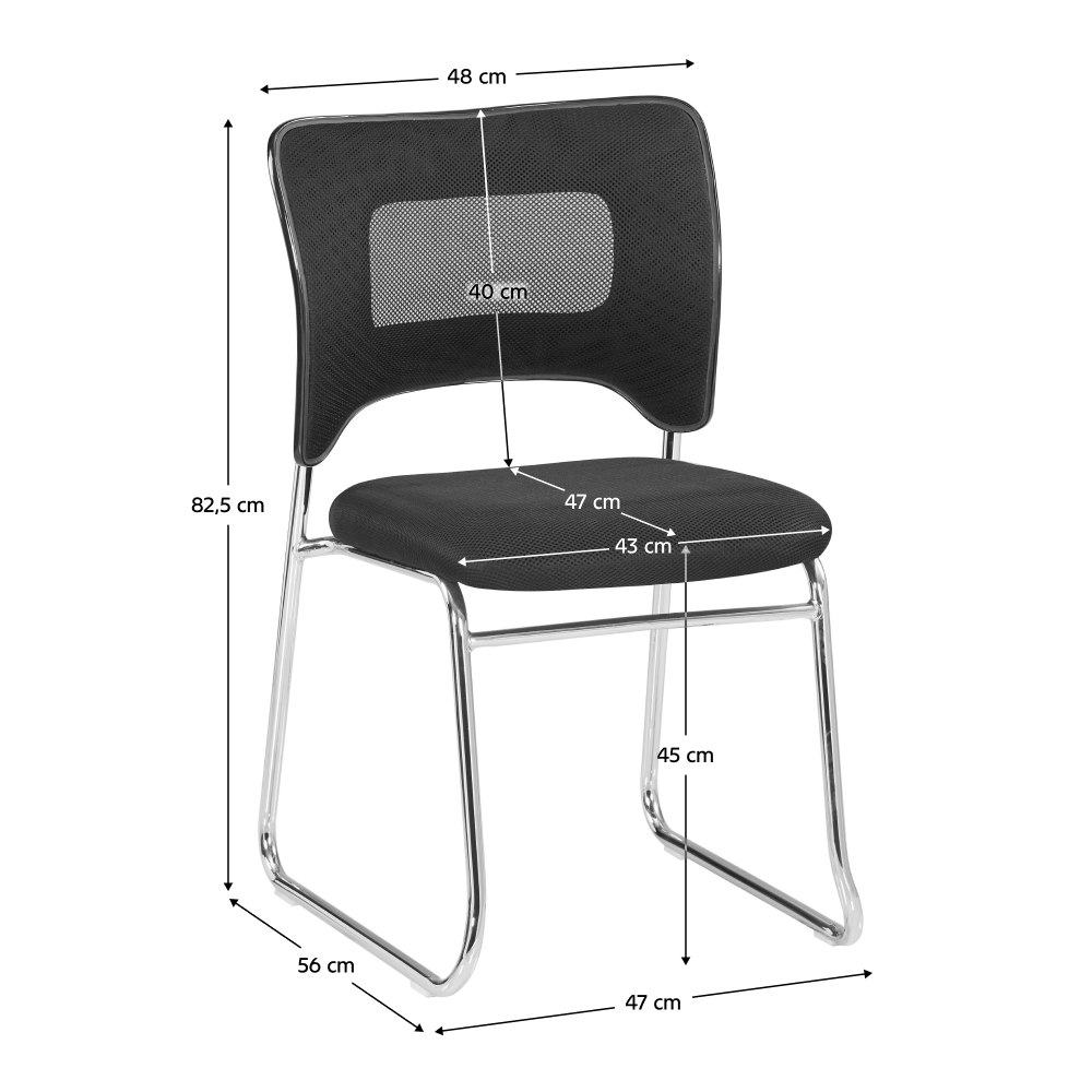 Materiál: sieťovina/kovOderuodolnosť textílie podľa testu Martindale: 90 000 oderovFarba: čierna/chrómRozmery (ŠxHxV): 47x56x82,5 cmVýška sedu : 45 cmHĺbka sedu : 47 cmŠírka sedu: 43 cmŠírka chrbtovej opierky: 48 cmVýška chrbtovej opierky: 40 cmNosnosť: 100 kgHmotnosť: 5 kgChrómová podstavaStohovateľnáZasadaciaDodávané v monte