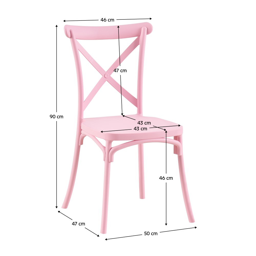 Materiál: plastFarba: ružováRozmery (ŠxHxV): 50x47x90 cmVýška sedu: 46 cmHĺbka sedu: 43 cmŠírka sedenia: 43 cmVýška chrbta: 47 cmŠírka chrbta: 46 cmNosnosť: 100 kgHmotnosť: 4,25 kgStohovateľnáVhodná do interiéru aj exteriéruDodávané v monte