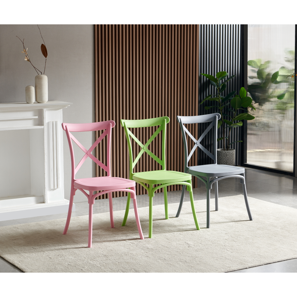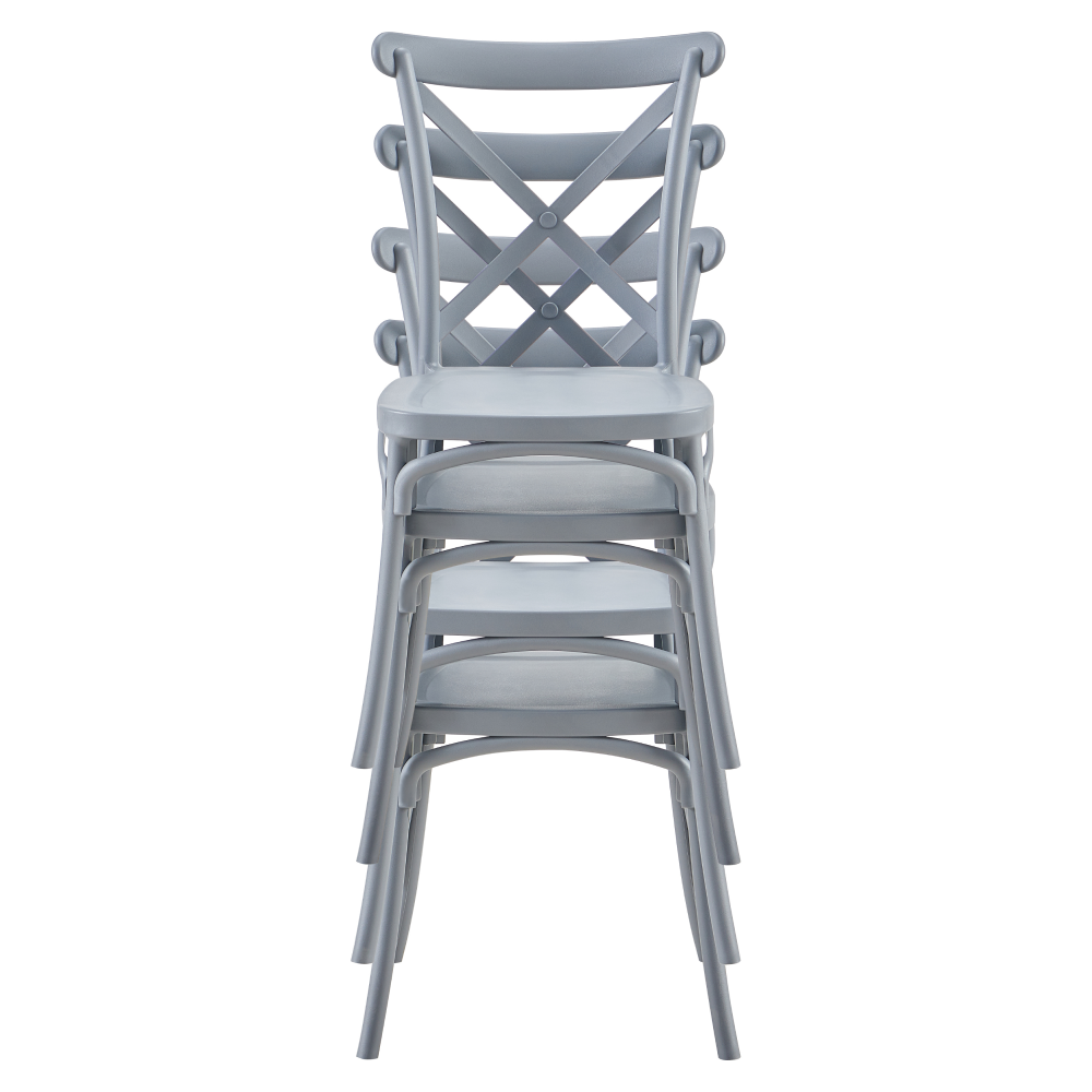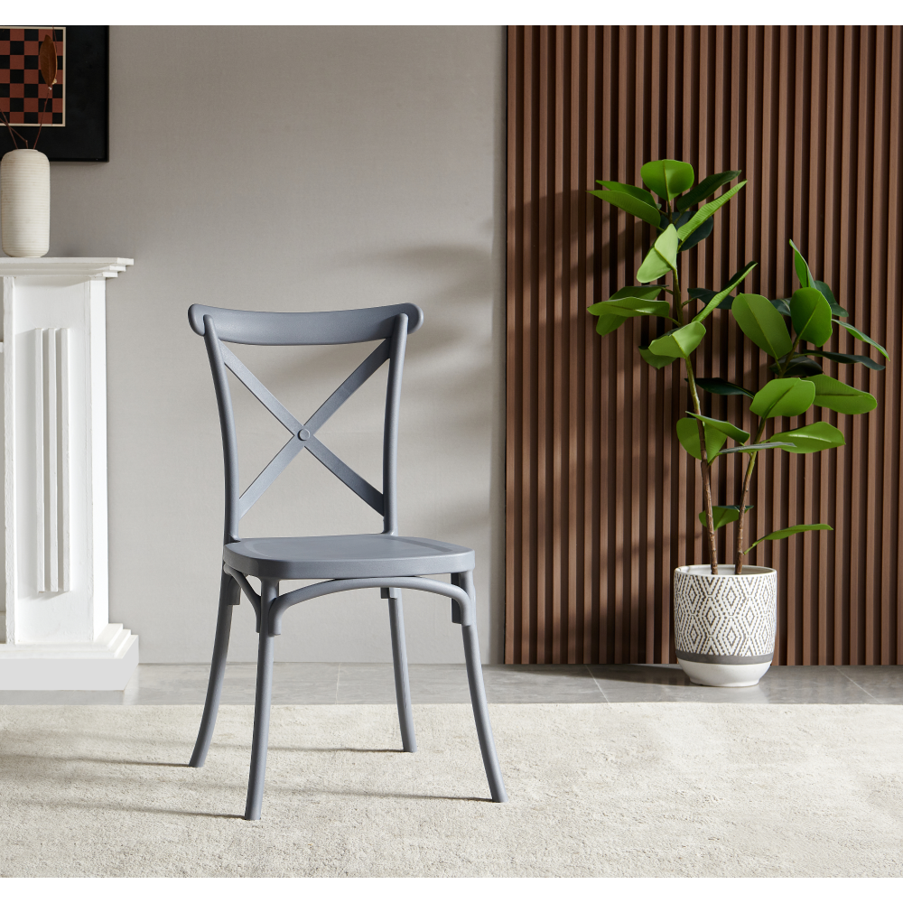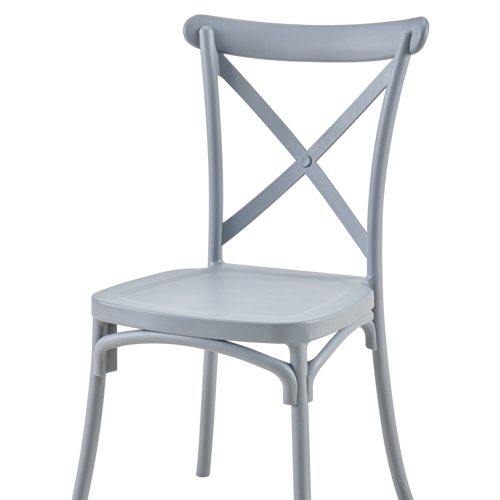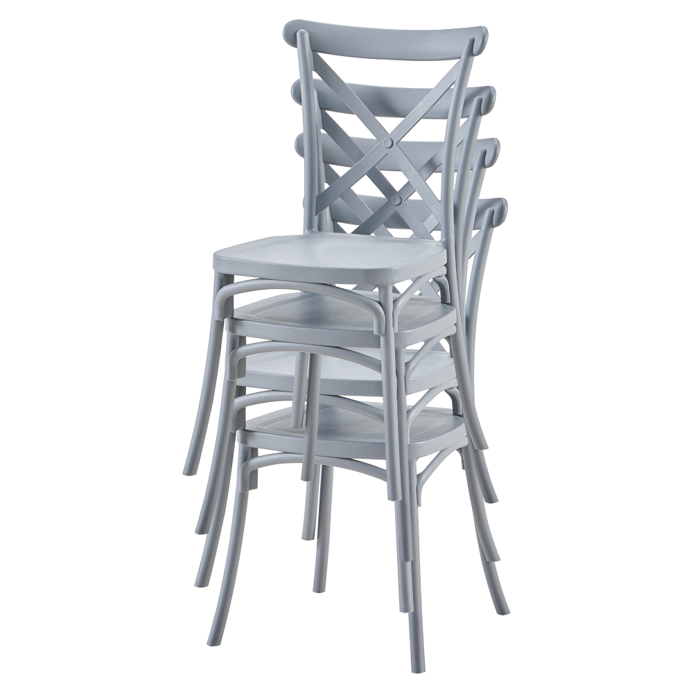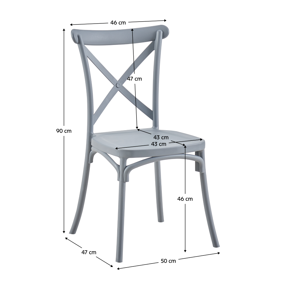 Materiál: plastFarba: siváRozmery (ŠxHxV): 50x47x90 cmVýška sedu: 46 cmHĺbka sedu: 43 cmŠírka sedenia: 43 cmVýška chrbta: 47 cmŠírka chrbta: 46 cmNosnosť: 100 kgHmotnosť: 4,25 kgStohovateľnáVhodná do interiéru aj exteriéruDodávané v monte
