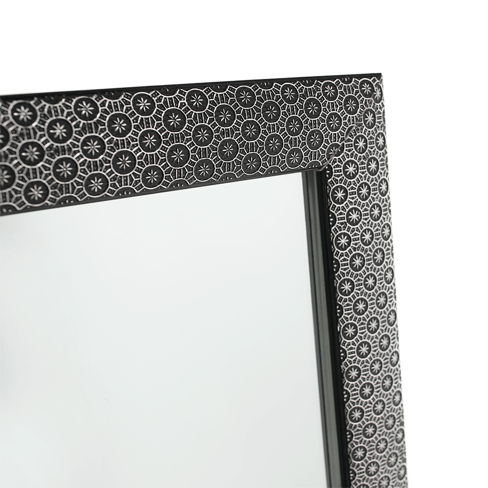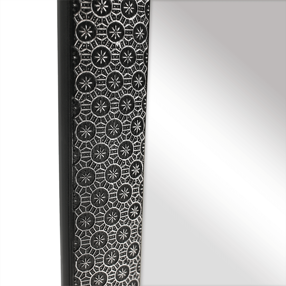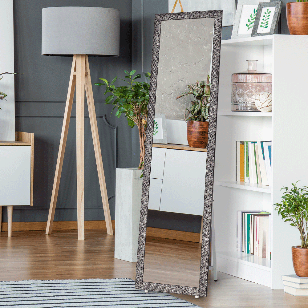 Materiál stojan: kovFarba: bielaMateriál rám: drevoFarba: čiernaRozmery (ŠxV): 40x150 cmElegantnéStojanovéRám s ornamentomDodávané v demonte