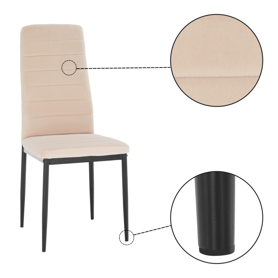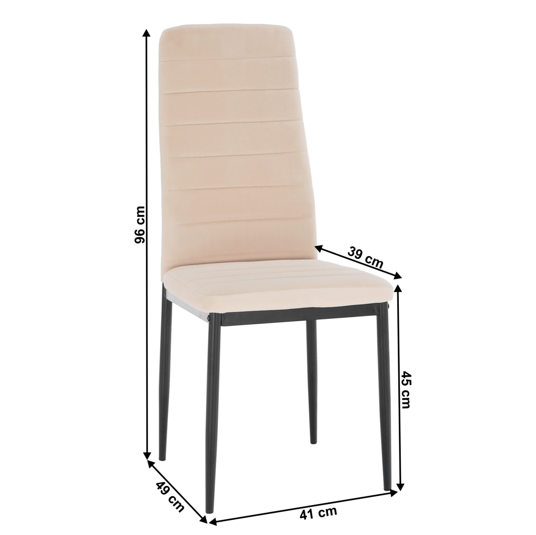 Jedálenská stolička COLETA NOVA vo farebnom prevedení béžová Dulux velvet látka/čierne kovové nohy.Oderuodolnosť textílie podľa testu Martindale: 85 000 oderovRozmery (ŠxHxV): 41x49x96 cmHĺbka sedu: 39 cm Výška sedenia: 45 cmŠírka sedenia: 41 cmNosnosť: 90 kgDodávané v demonte.