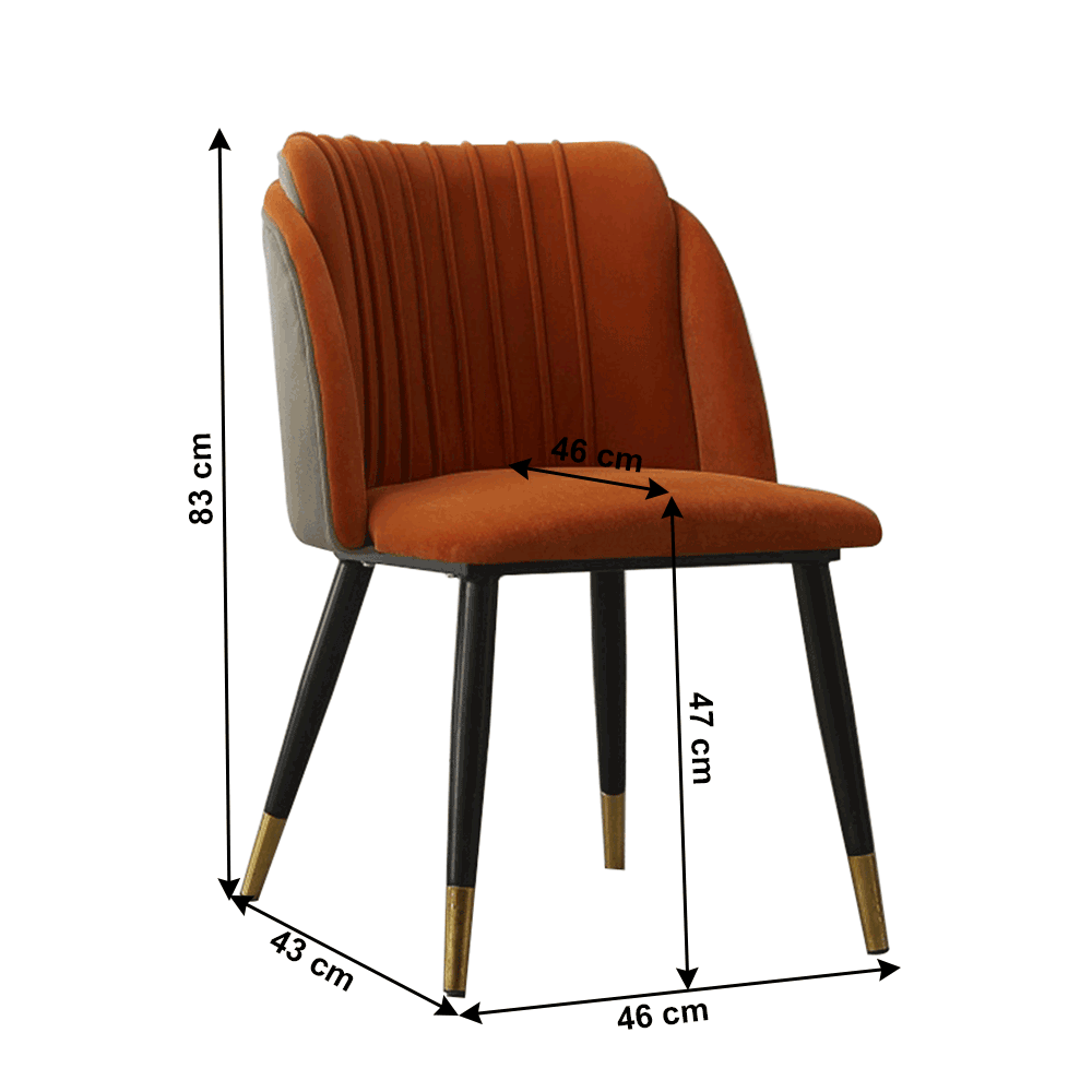 Materiál čalúnenie: Velvet látkaOderuodolnosť textílie podľa testu Martindale: 85 000 oderovFarba: terakota/siváMateriál nohy: kovFarba: čiernaMateriál nohy: kovFarba nohy: čiernaRozmery (ŠxHxV): 46x43x83 cmVýška sedu: 47 cmHĺbka sedu: 46 cmNosnosť: 95 kgDekoratívne šitieNevšedný dizajnModerný trend s retroNádych luxusuDodávané v demonte