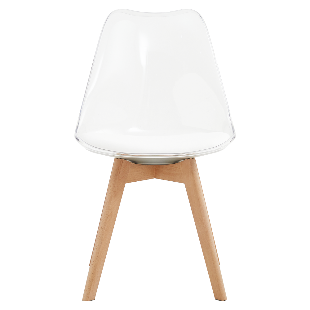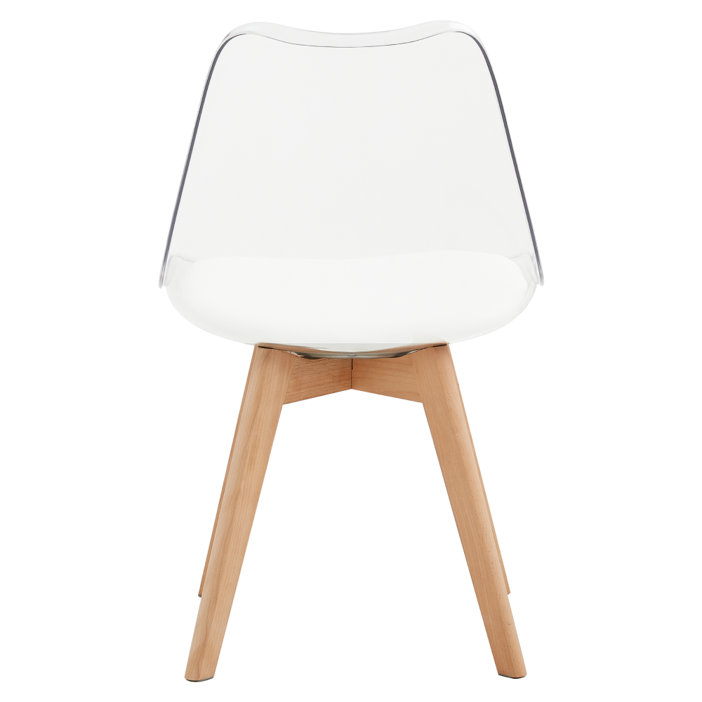Materiál: akryl/ekokoža/bukové drevoOderuodolnosť textílie podľa testu Martindale: 100 000 oderovFarba: transparentná/biela/bukRozmery (ŠxHxV): 48x54x80 cmVýška sedu: 46 cmHĺbka sedu: 42 cmExtra mäkké sedenieAkrylové prevedenieNosnosť: 110 kgDodávané v demonte