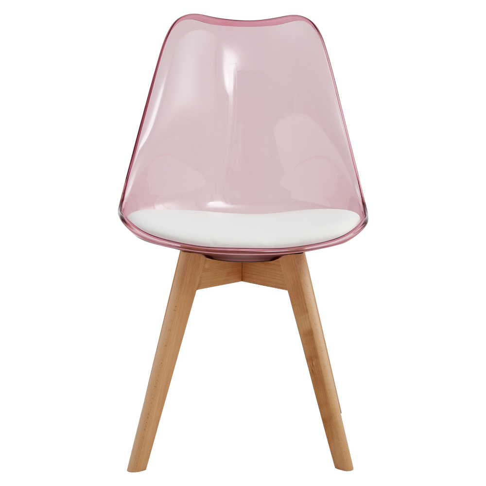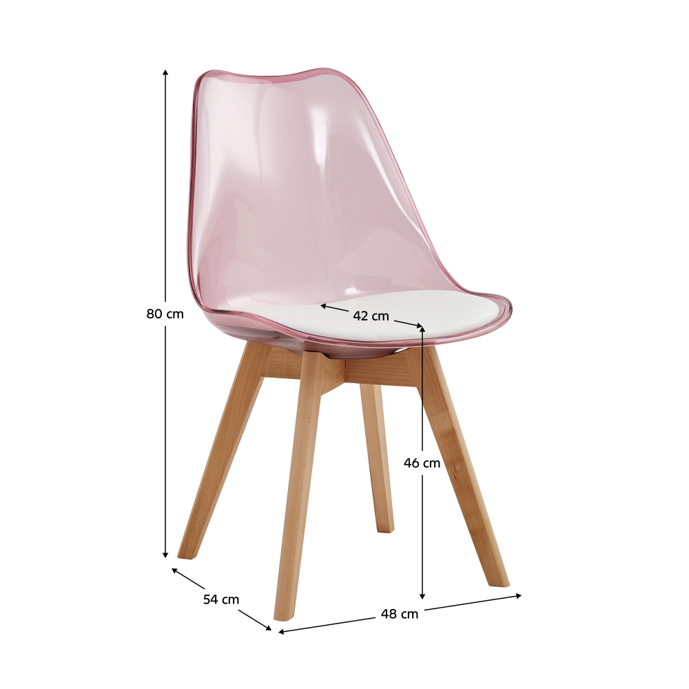 Materiál: akryl/ekokoža/bukové drevoOderuodolnosť textílie podľa testu Martindale: 100 000 oderovFarba: transparentná ružová/biela/bukRozmery (ŠxHxV): 48x54x80 cmVýška sedu: 46 cmHĺbka sedu: 42 cmExtra mäkké sedenieAkrylové prevedenieNosnosť: 110 kgDodávané v demonte