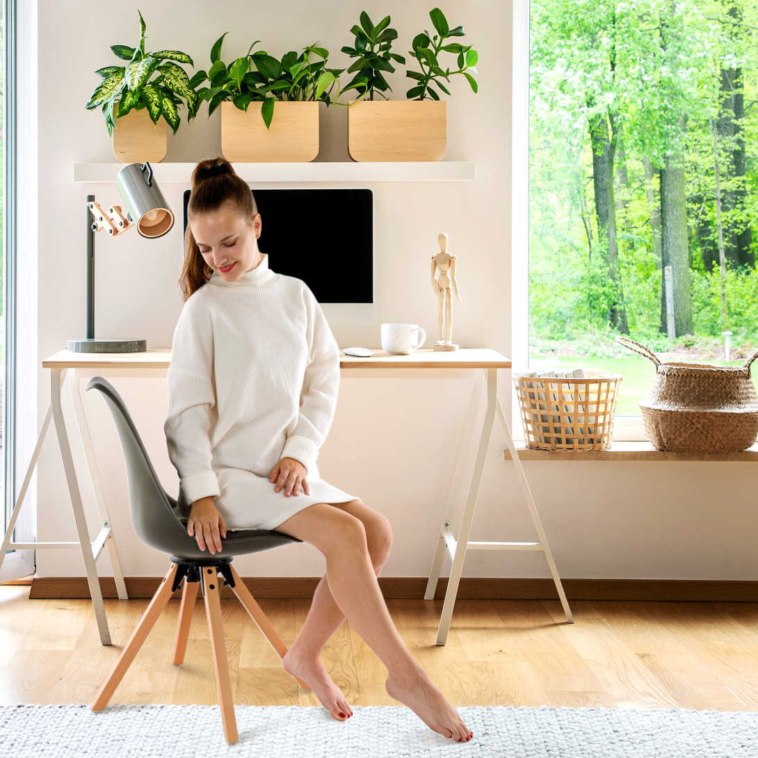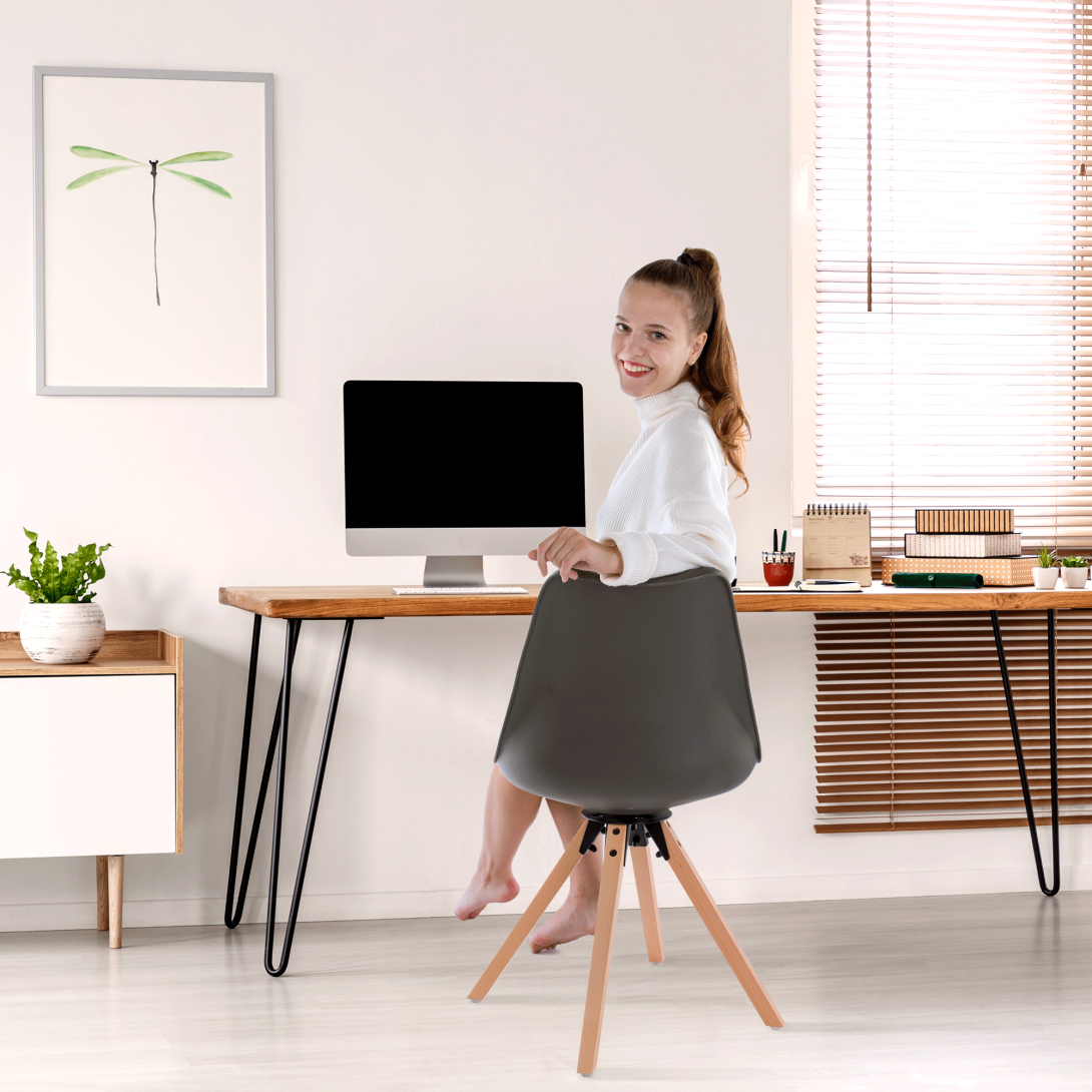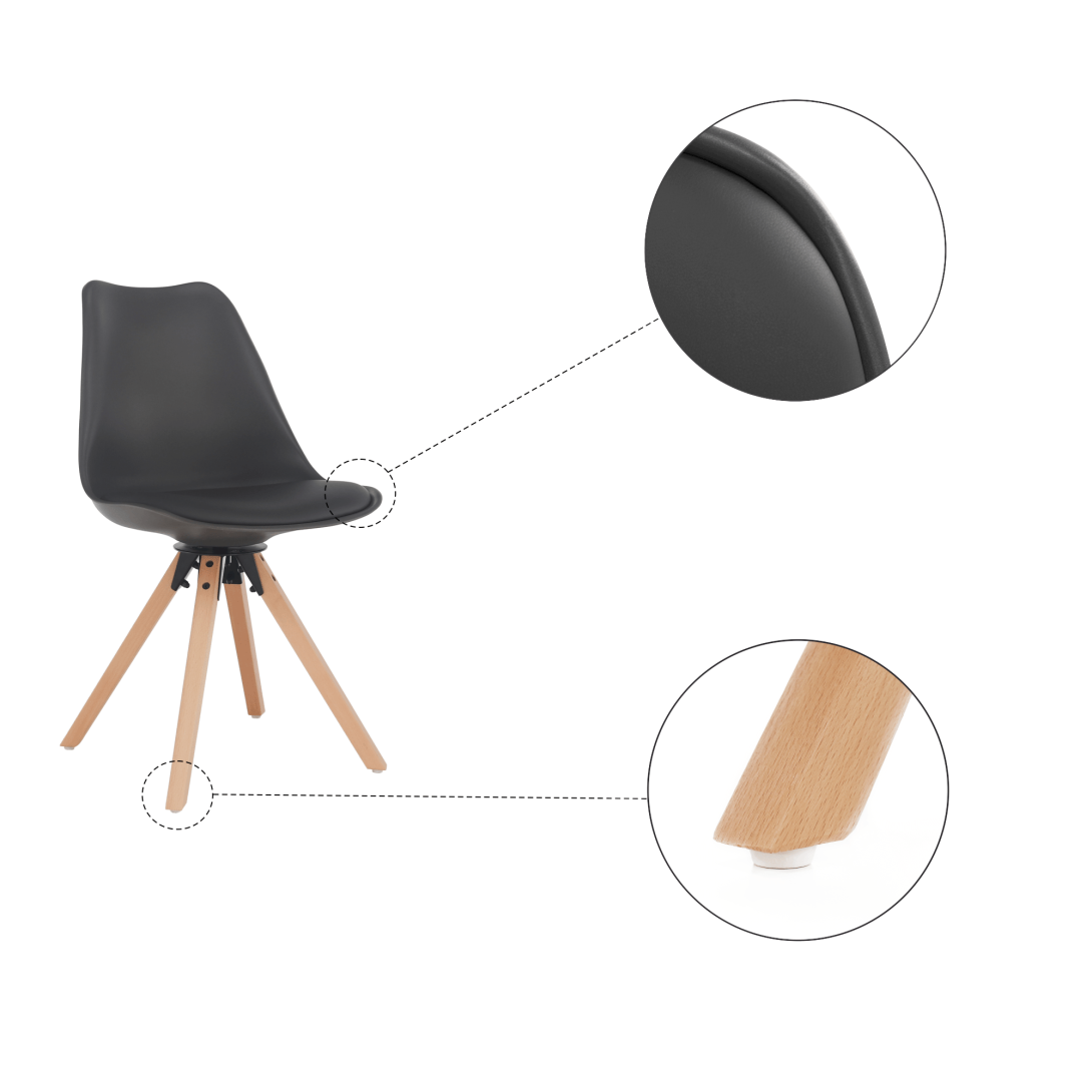 Materiál čalúnenie sedadla: ekokožaFarba: tmavosiváMateriál konštrukcia: plastFarba: tmavosiváMateriál nohy: drevoFarba: bukOderuodolnosť textílie podľa testu Martindale: 100 000 oderovRozmery (ŠxHxV): 48x57,5x82,5 cmŠírka sedenia: 47cmHĺbka sedenia: 43 cmVýška sedenia: 48 cmNosnosť: 100 kgOtočnáAž do 360° stupňovDodávané v demonte