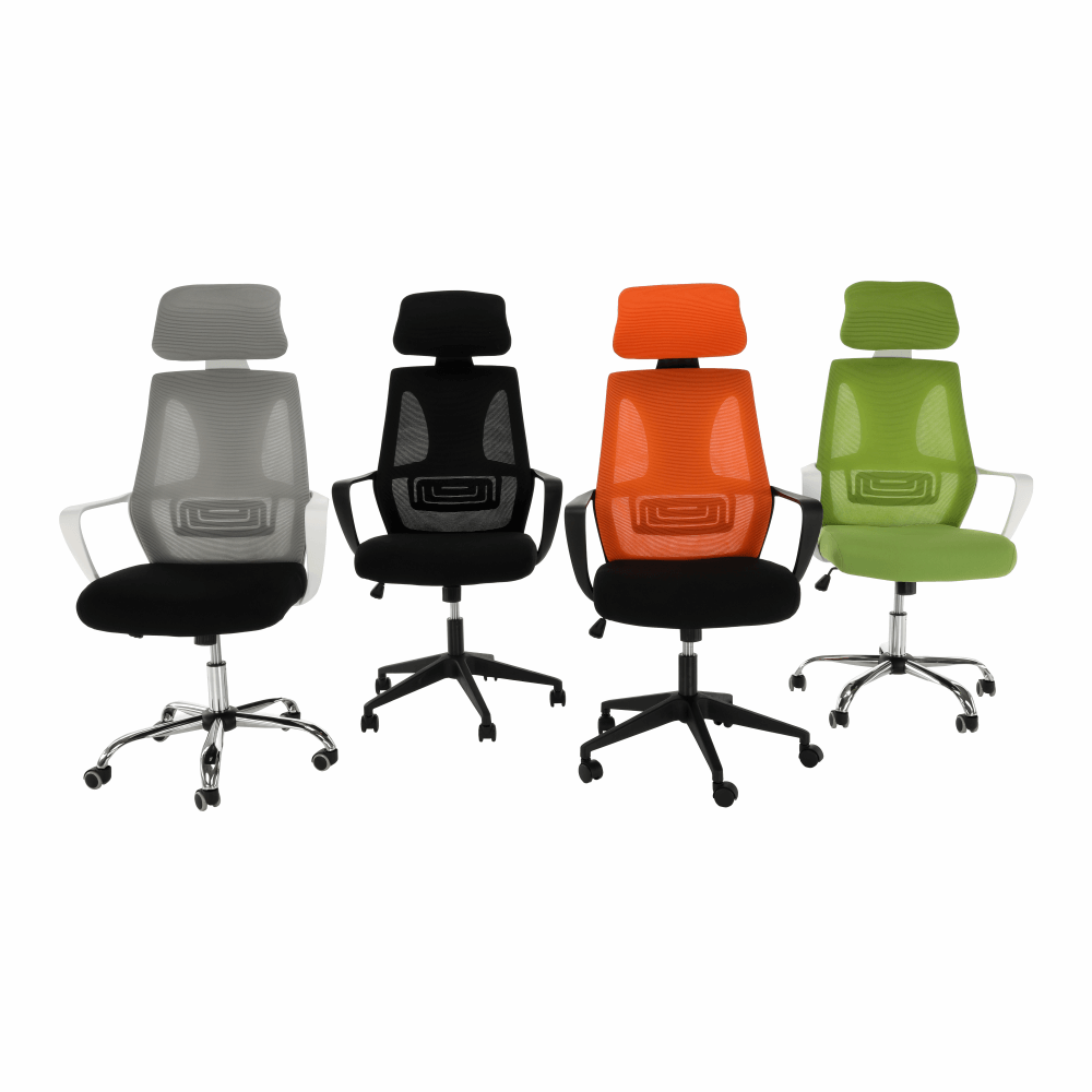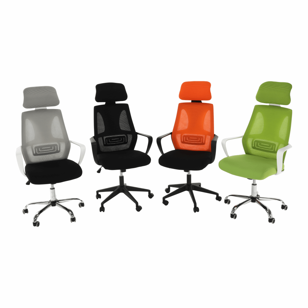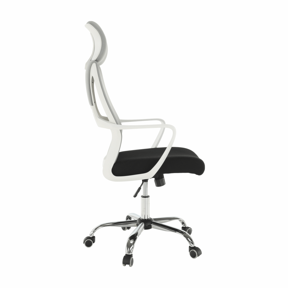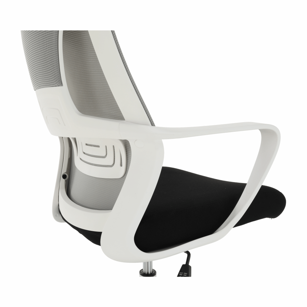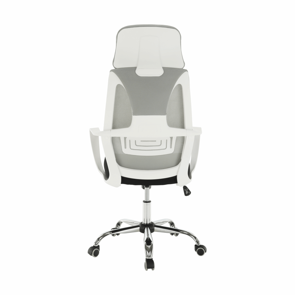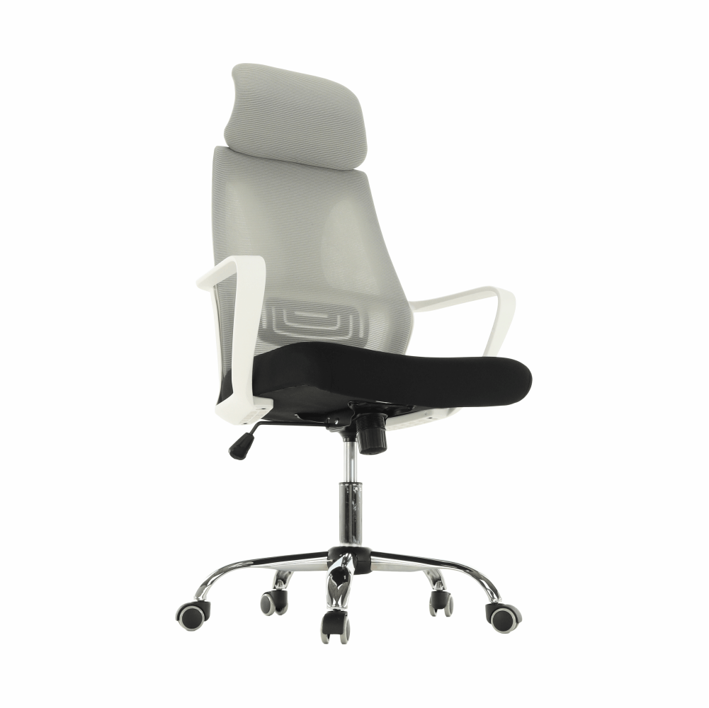 Materiál: látka/plast/kovOderuodolnosť textílie podľa testu Martindale: 90 000 oderovFarba: sivá/čierna/bielaRozmery (ŠxHxV): 64x63x118-126 cmNastaviteľná výška sedu : 45-53 cmHĺbka sedu : 52 cmŠírka sedu : 50 cmVýška chrbtovej opierky: 76-79,5 cmŠírka chrbtovej opierky: 49 cmNosnosť: 110 kgS opierkou hlavyS opierkami na rukyMechanizmus hojdaniaChrómová podstavaUniverzálne kolieska sú vhodné na mäkké aj tvrdé podlahyDodávané v demonte