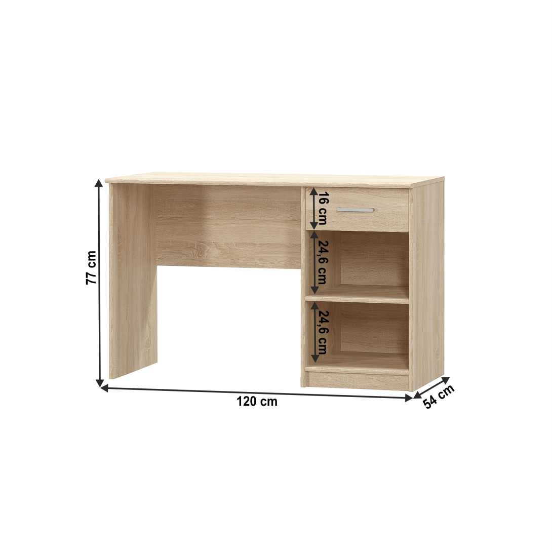 PC stôl 1S so šuplíkom TEYOMateriál: DTD laminovanáFarba: dub sonomaRozmery (ŠxHxV): 120x54x77 cmHrúbka materiálu: 16 mm Dodávané v demonte.