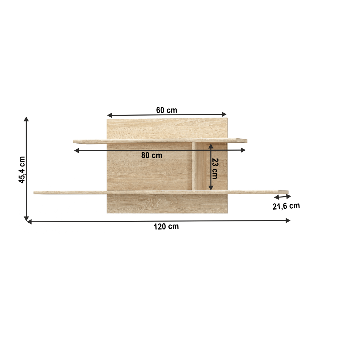 Visiaca polica 120 TEYOMateriál: DTD laminovanáFarba: dub sonomaRozmery (ŠxHxV): 120x21,6x45,4 cmHrúbka materiálu: 16 mm Dodávané v demonte.