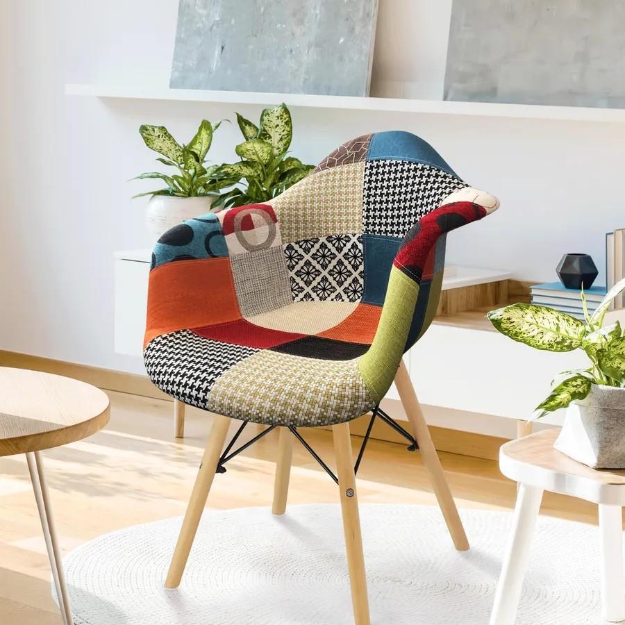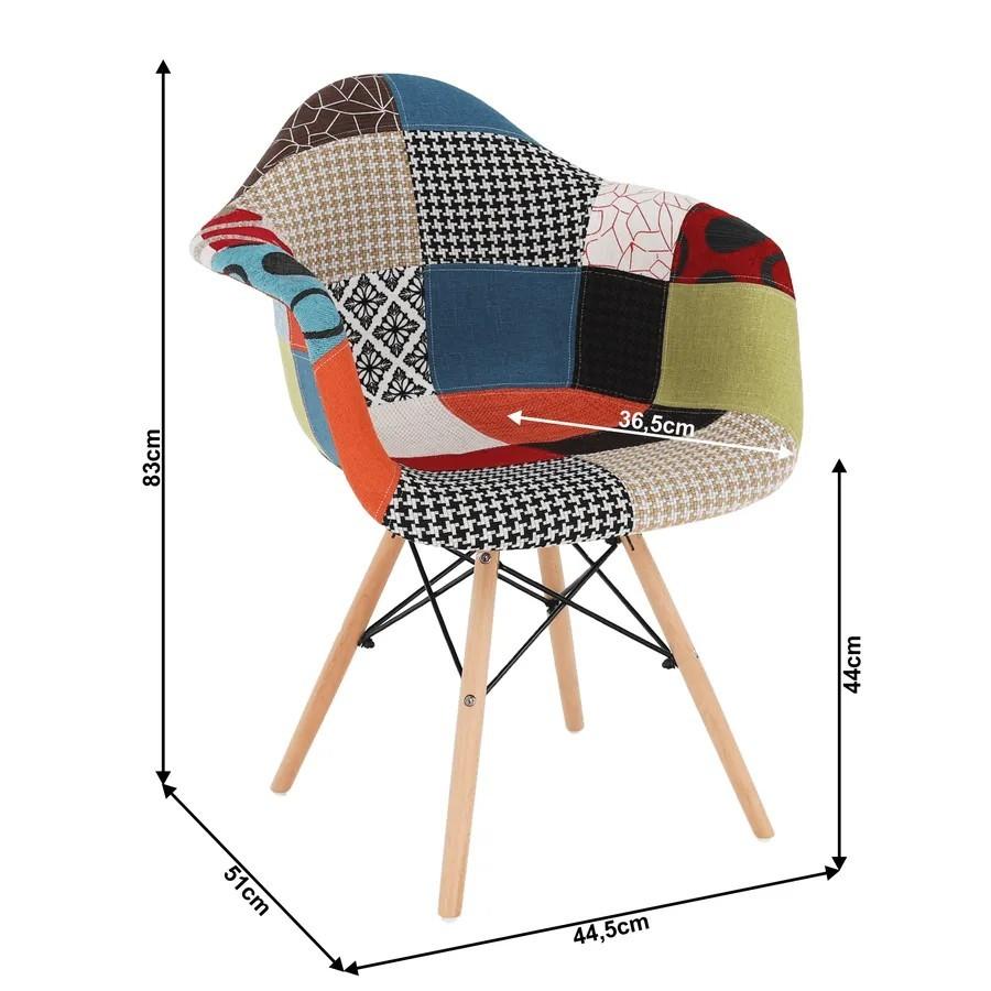 Jedálenské kreslo, Materiál: látka/buk/chróm, Farba: technika patchwork/mix farieb, Rozmery (ŠxHxV): 44,5x51x83 cm, Nosnosť: 110 kg