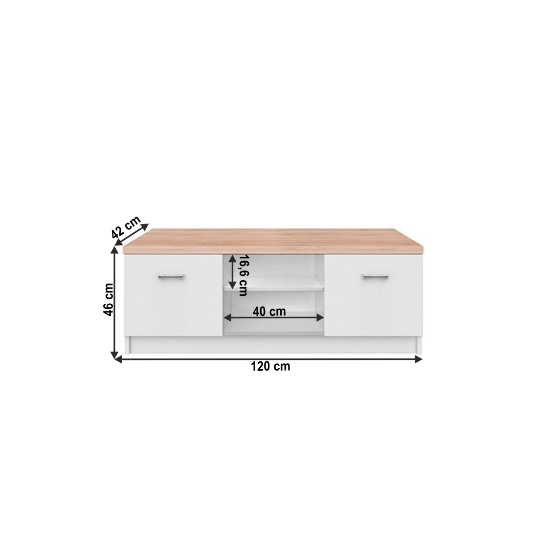 KONDELA TOPTY TYP 15 RTV STOLIK 2D, BIELA/DUB SONOMA