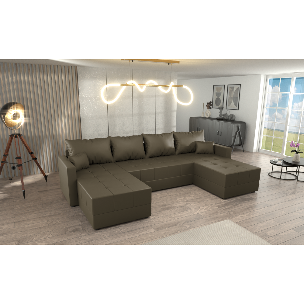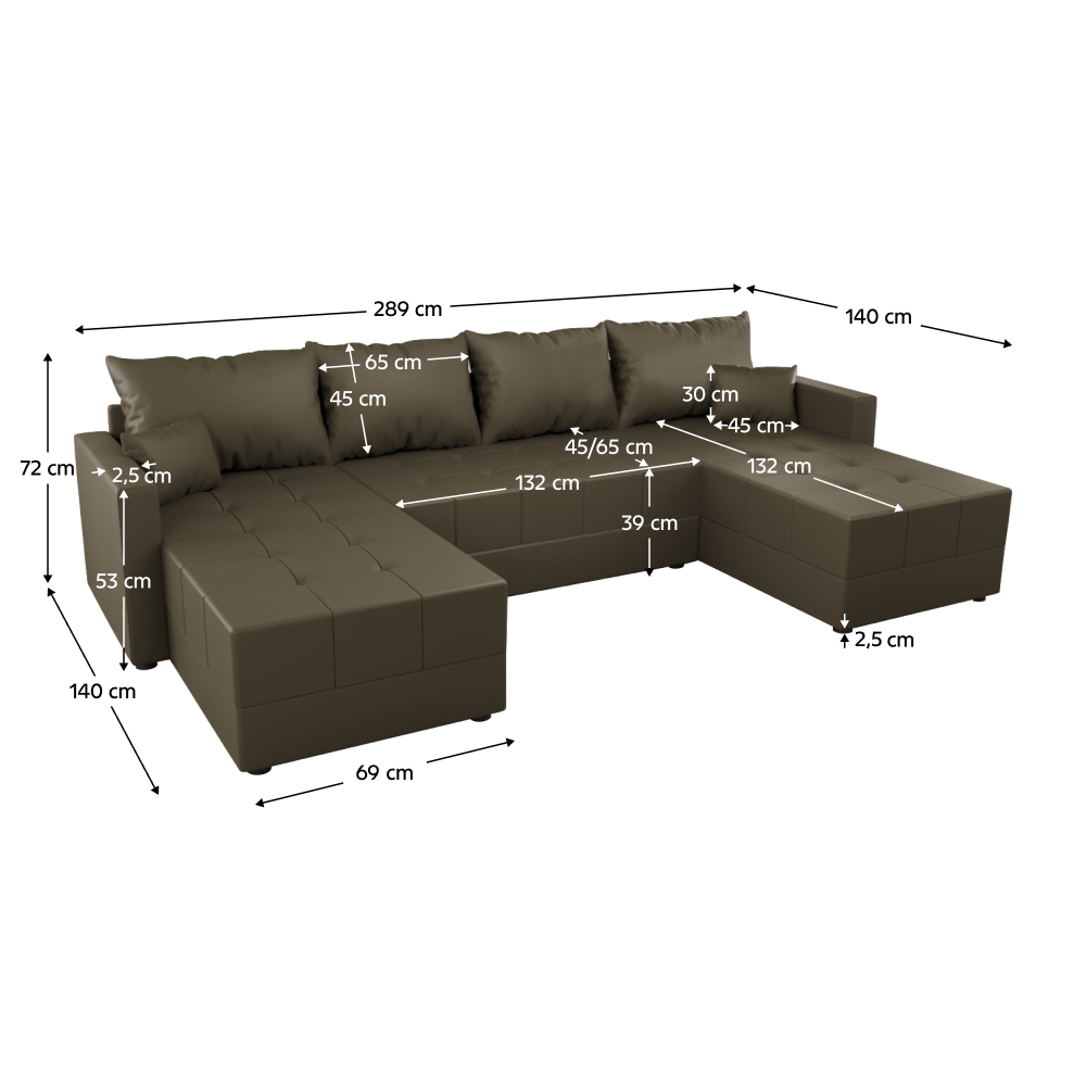 Materiál: látka Riviera 26Oderuodolnosť textílie podľa testu Martindale: 90 000 oderovFarba: hnedáRozmery (ŠxHxV): 289x140/140x72 cmRozkladaciaPlocha na spanie (ŠxD): 115x265 cmVýška sedu: 39 cmHĺbka sedu: 45/65 cmŠírka sedacej časti: 131 cmŠírka otomanu: 69 cmNa nožičkáchMateriál nožičiek: plastFarba nožičiek: čiernaVýška spodného priestoru od podlahy: 2,5 cmVýplň: PUR pena T28Univerzálne prevedenieTvar URohováS úložným priestoromDodávané s vankúšmiRozmery dekoratívnych vankúšov (ŠxV): 45x30cmRozmery opierkového vankúša (ŠxV): 65x45 cmDodávané v demonte