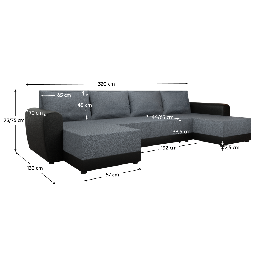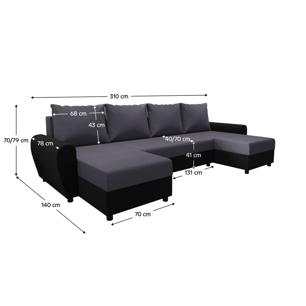 Materiál: látka Twist 20/ekokoža D8Oderuodolnosť látky podľa testu Martindale: 45 000 oderovOderuodolnosť ekokože podľa testu Martindale: 100 000 oderovFarba: sivá/čiernaRozmery (ŠxHxV): 310x140/140x70/79 cmPlocha na spanie (ŠxD): 135x265 cmVýška sedu: 41 cmHĺbka sedu: 40/70 cmHĺbka otomanu bez vankúšov: 131 cmNa plastových nožičkáchFarba nožičiek: čiernaVýška spodného priestoru od podlahy: 4,5 cmVýplň: pur pena T28RozkladaciaUniverzálnaTvar US úložným priestoromDodávaná s vankúšmiRozmer vankúšov (ŠxH): 68x43 cmDodávané v demonte