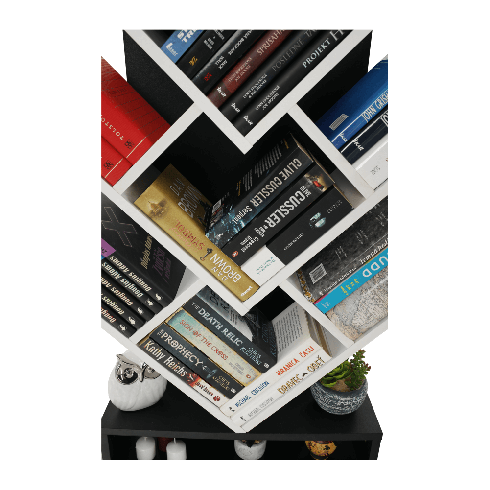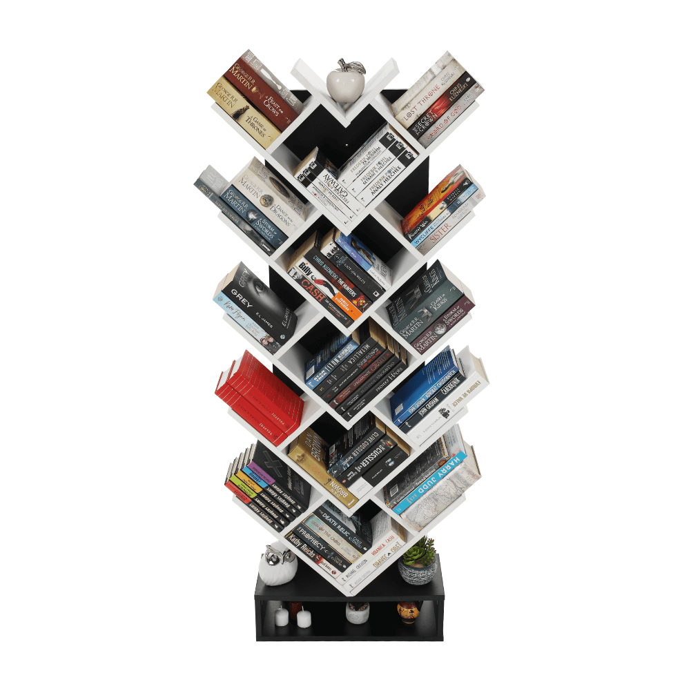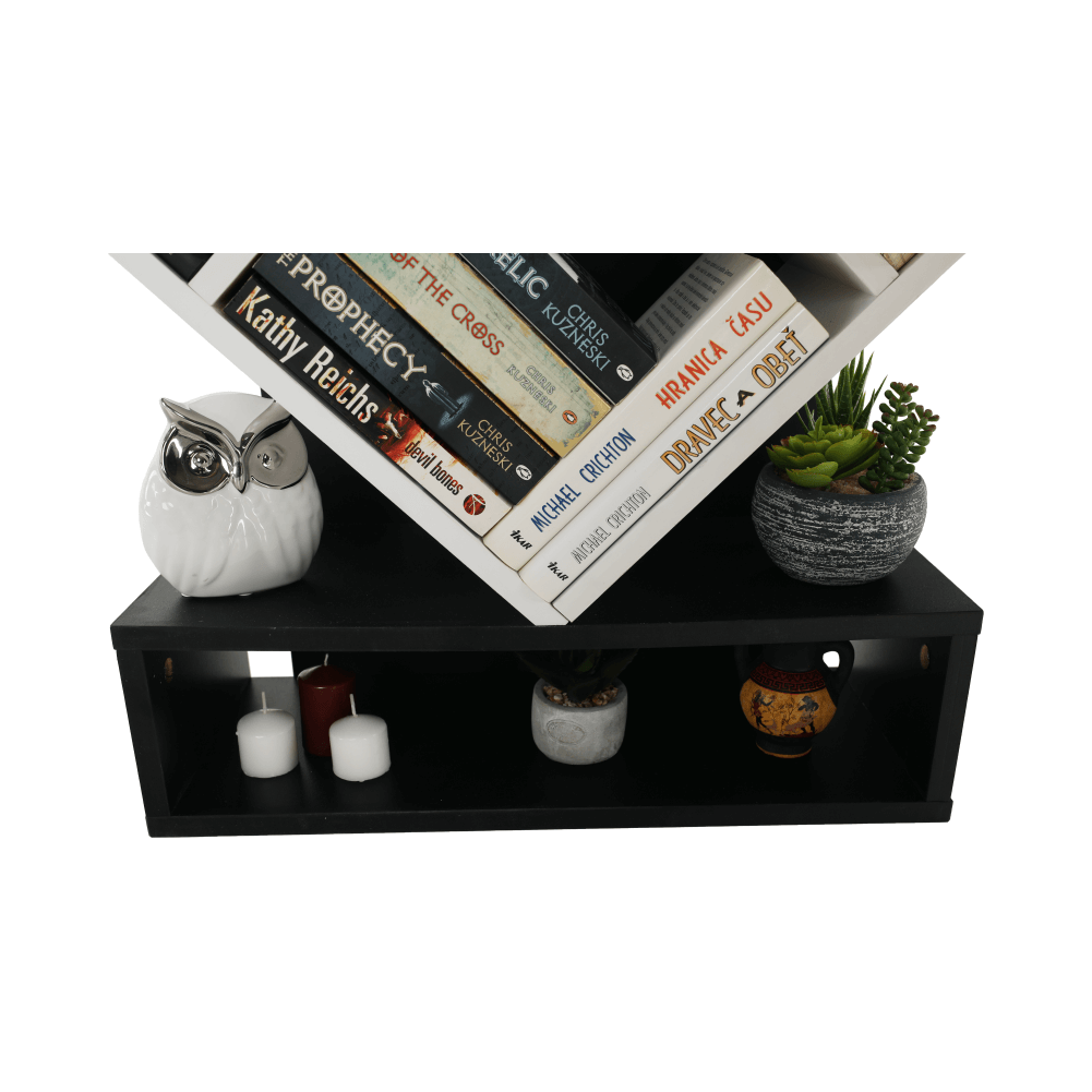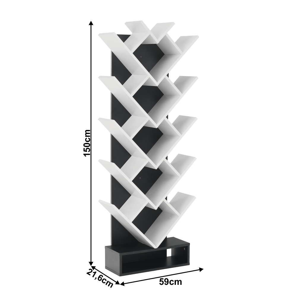 Viacúčelový regál VEVEYMateriál: DTD Farba: biela/čierna Rozmery (ŠxHxV): 59x21,6x150 cm.Hrúbka materiálu: 15 mm