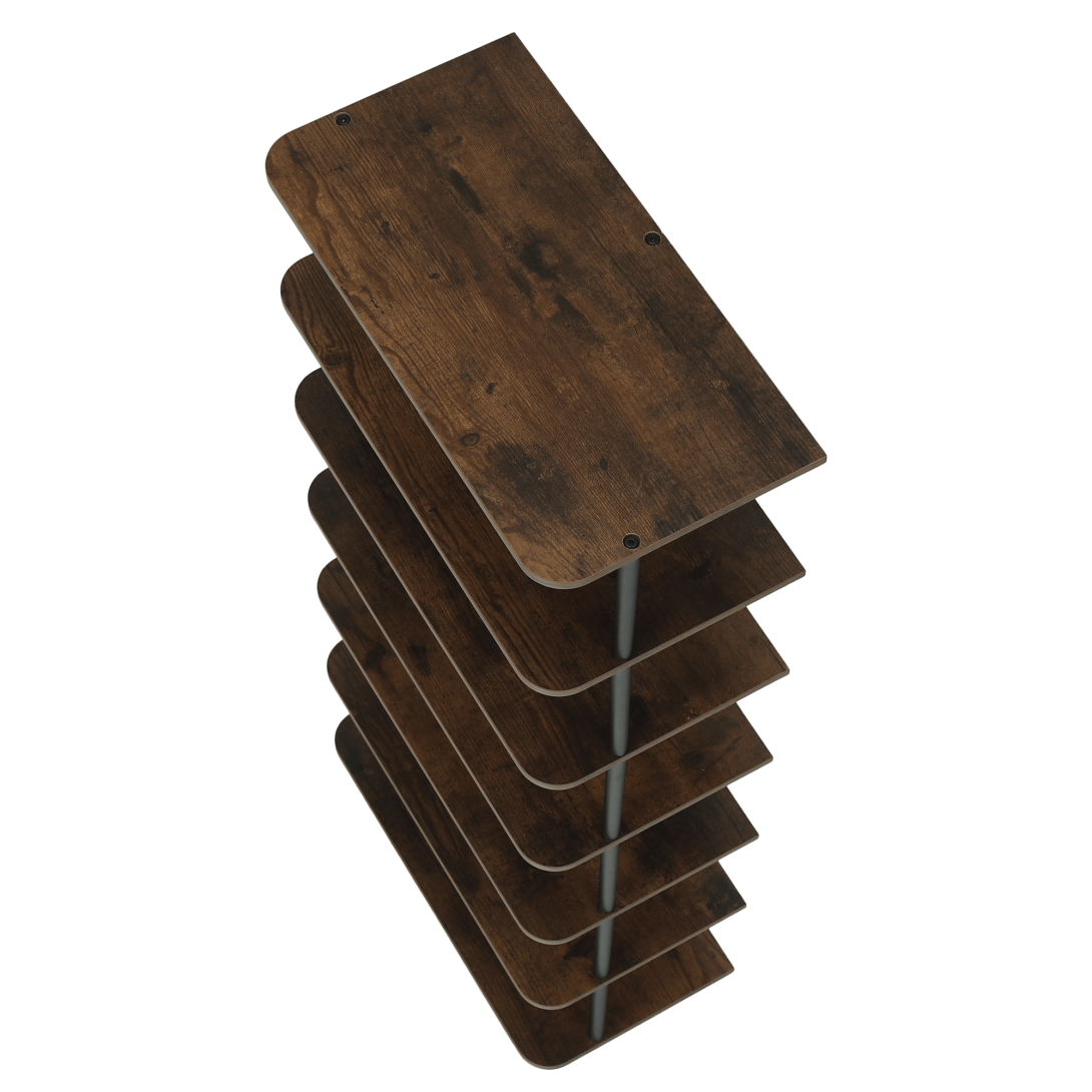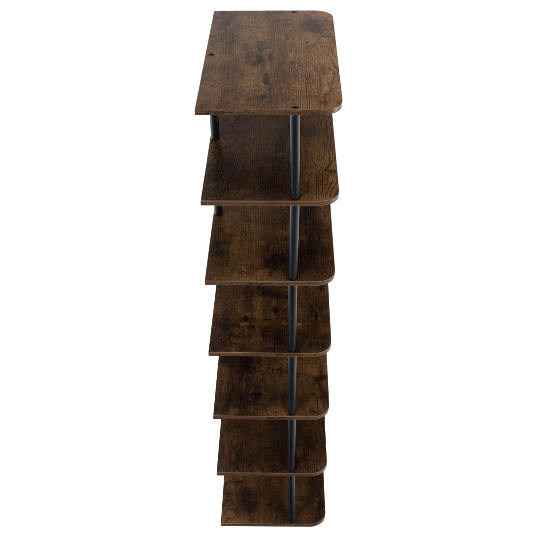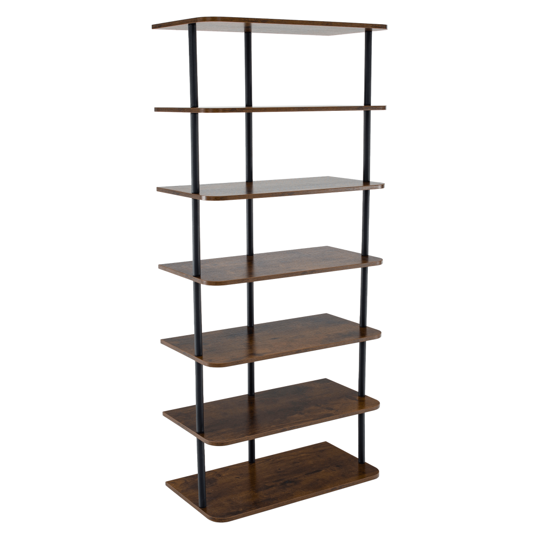 Materiál: kov/DTDFarba: čierna/rustikálne drevoRozmery (ŠxHxV): 46x24x102,5 cmHrúbka tyče: 1,6 cmNosnosť na policu: 5 kg-10 kgVýška police: 16 cm6-radovýViacúčelovýDodávané v demonte