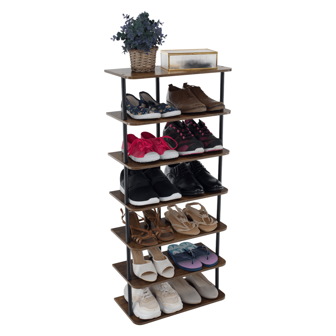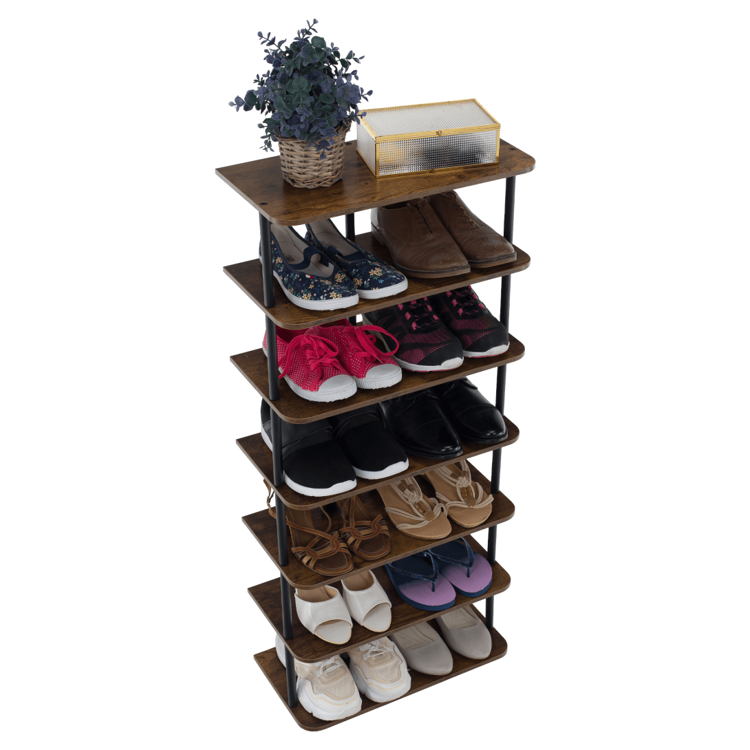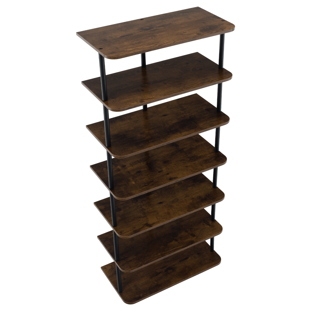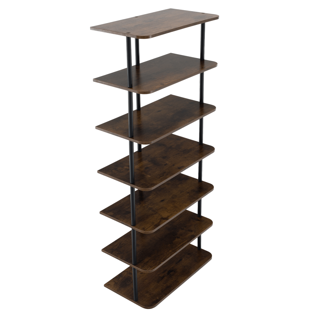 Materiál: kov/DTDFarba: čierna/rustikálne drevoRozmery (ŠxHxV): 46x24x102,5 cmHrúbka tyče: 1,6 cmNosnosť na policu: 5 kg-10 kgVýška police: 16 cm6-radovýViacúčelovýDodávané v demonte