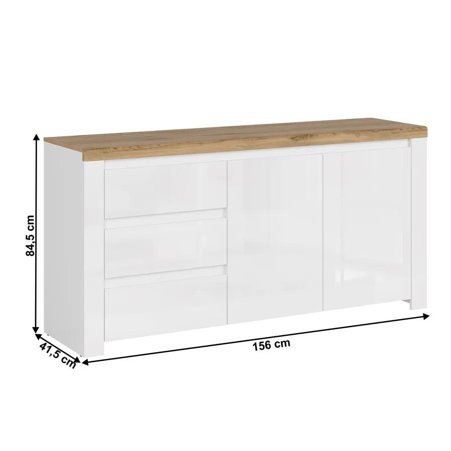 KONDELA VILGO KOMODA 2D3S, BIELY LESK/DUB WOTAN