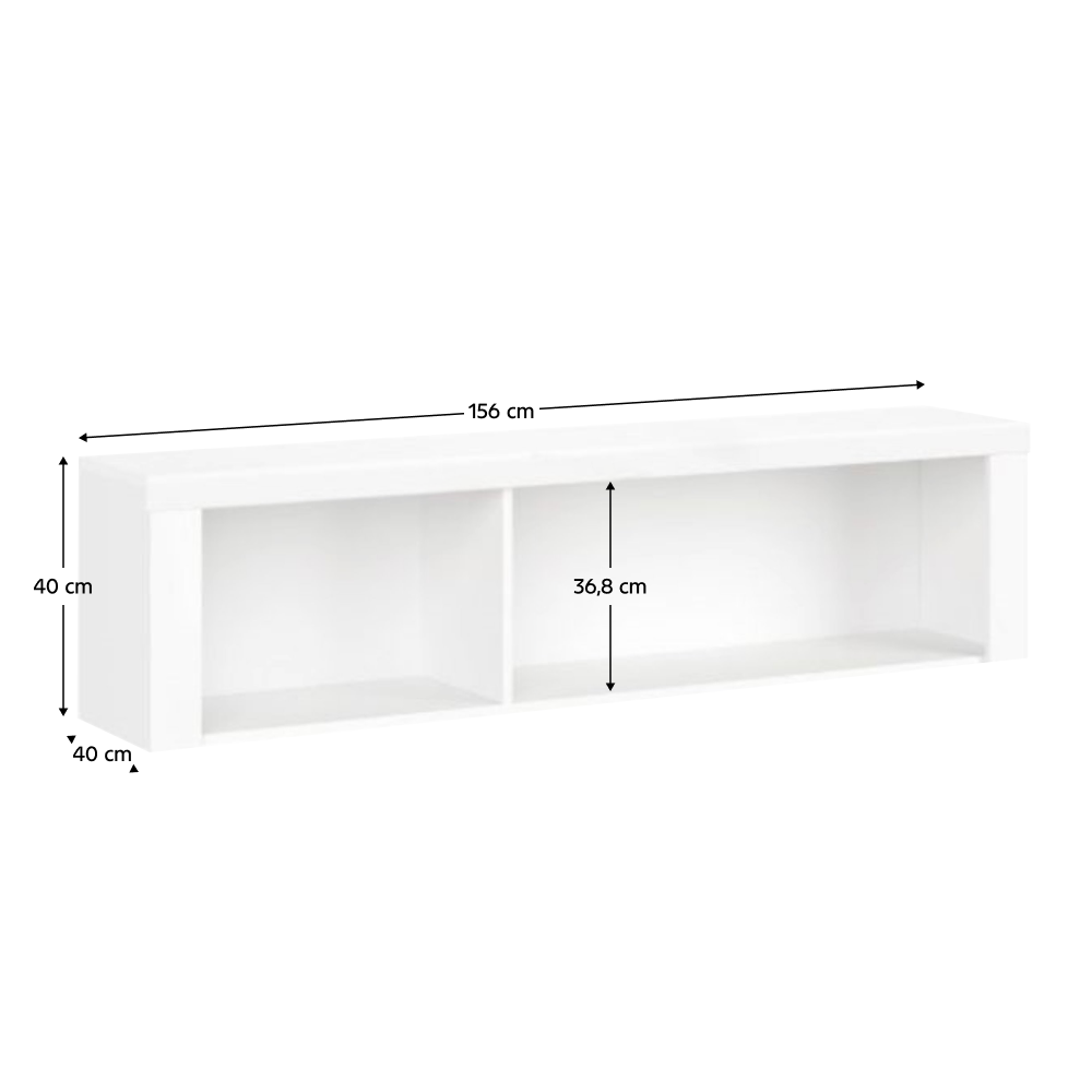 Materiál: laminovaná DTDFarba: biely leskRozmery (ŠxHxV): 156x40x40 cmHrúbka materiálu: 1,6 cmABS hranyModerný dizajnOtvorený úložný priestorOdporúčame pripevniť k steneLen na objednávkuDodacia lehota je 3-5 týždňovDodávané v demonte
