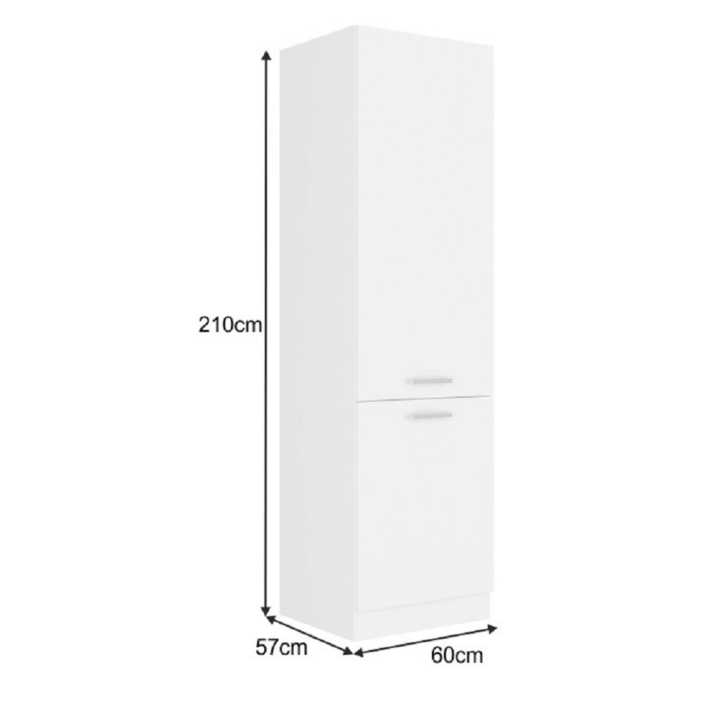 Vysoká skrinka Split 60 DK-210 2FMateriál: DTD laminovanáFarba: bielaRozmery (ŠxHxV): 60x57x210 cmDodávané v demonteSpodné skrinky sú dodávané vrátane dolnej lišty. Pracovná doska nie je súčasťou skriniek. Je možné si doobjednať pracovnú dosku v prevedení dub lancelot za 55 eur/bm. Možnosť dokúpenia univerzálneho Ľ/P drezu LAY ON.