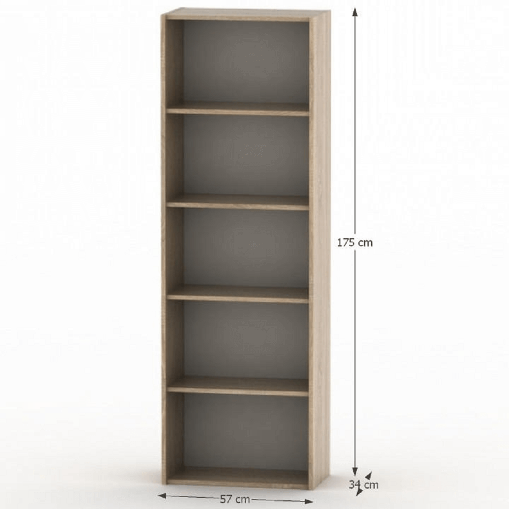 Vysoký policový regál TEMPO ASISTENT NEW 001Materiálové prevedenie: DTD laminovaná Farebné prevedenie: dub sonomaRozmery (ŠxHxV): 57x34x175 cmHrúbka materiálu: 16 mm Dodávané v demonte.