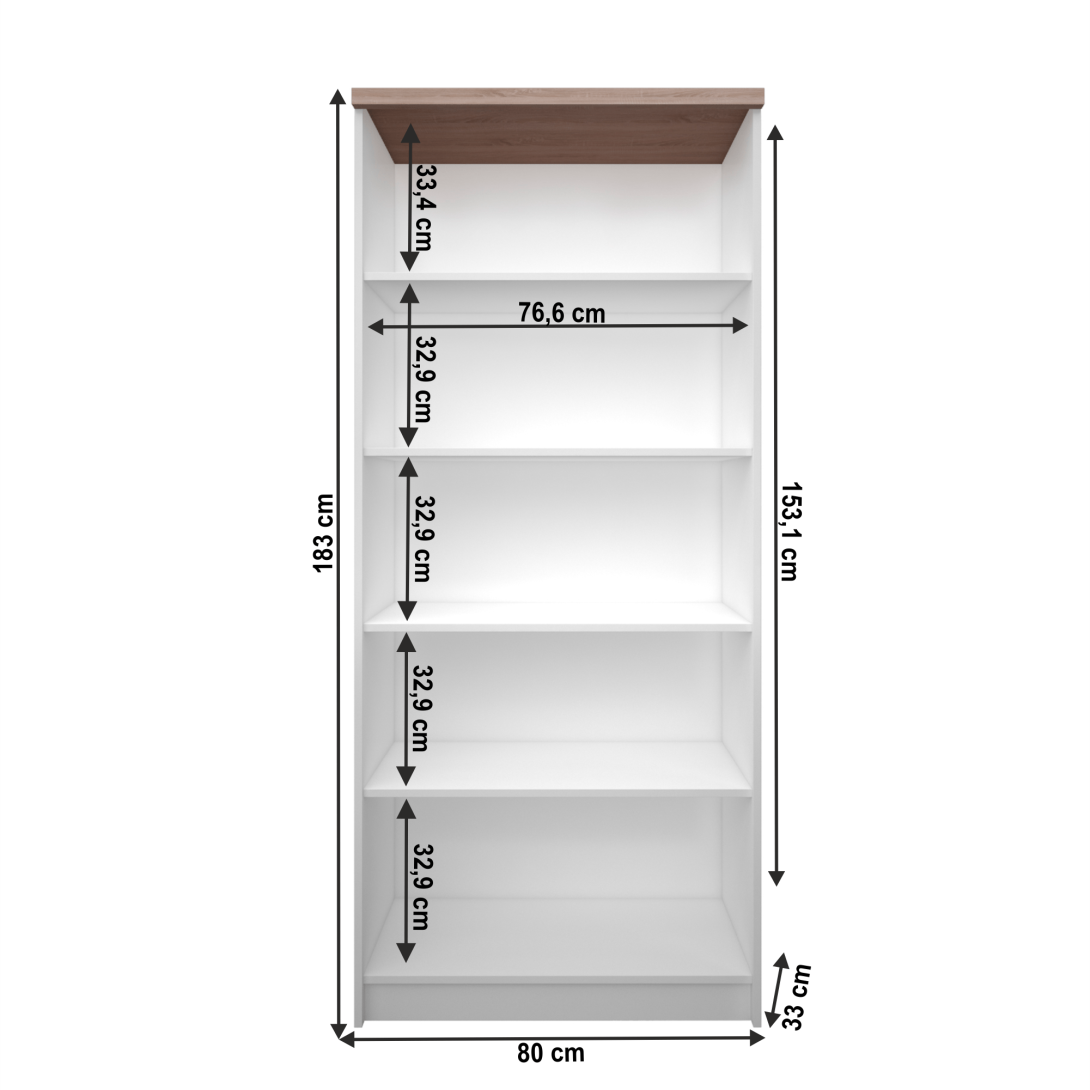 Regál otvorený TOPTY Typ 06Materiál: DTD laminovanáPrevedenie: biela/dub sonomaRozmery (ŠxHxV): 80x33x183 cmHrúbka materiálu korpus: 16 mmHrúbka materiálu vrchnej dosky: 32 mmModerný sektorový systém vhodný na zariadenie kancelárií, pracovní, obývacích priestorov či predsiení
