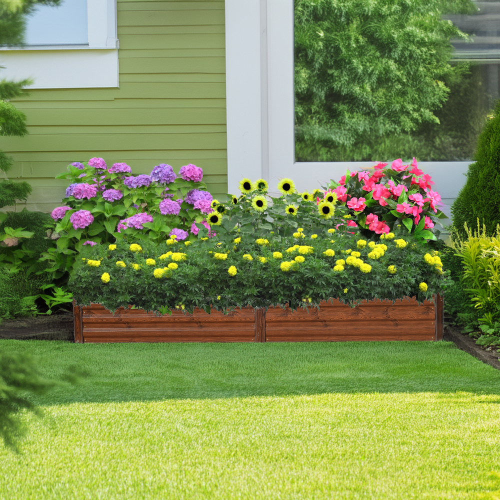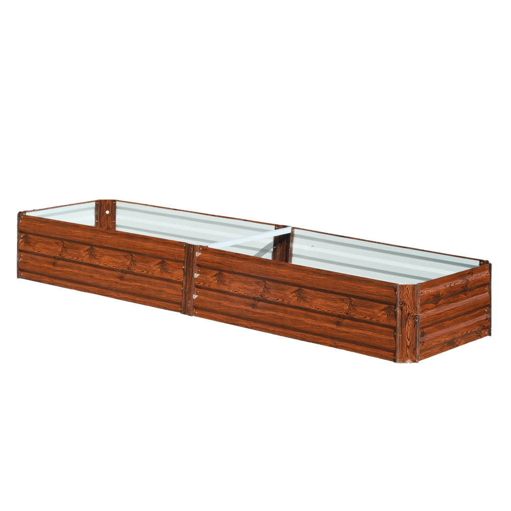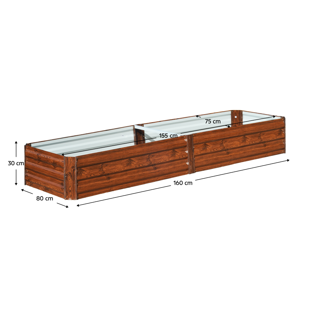Materiál záhon: oceľ/hliníkFarba: hnedá/vzor drevoVonkajšie rozmery (ŠxHxV): 160x60x30 cmVnútorné rozmery(ŠxHxV): 155x75x30 cmHrúbka materiálu: 0,3 mm, roh 0,8 mmVhodný do interiéru aj exteriéruJednoduchá montážOceľ s povrchovou práškovou úpravouNa bylinky, kvety alebo zeleninuPre rastliny s rozdielnymi nárokmi na pestovanieVyššia ochrana pred slimákmiNízka náchylnosť k rastu burínIdeálny do miest s pôdou chudobnou na živinyVhodný aj pre najmenšie záhradyModerný dizajnVšestranné využitieVhodný ako darčekDodávaný v demonte