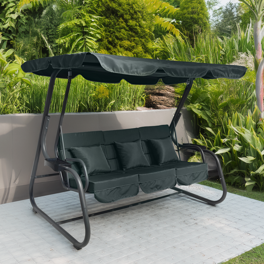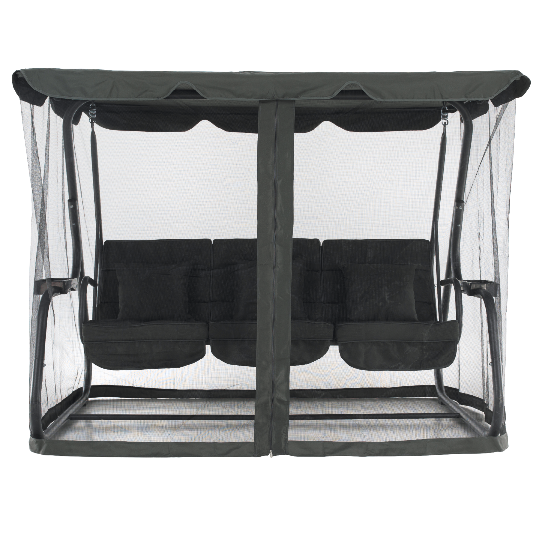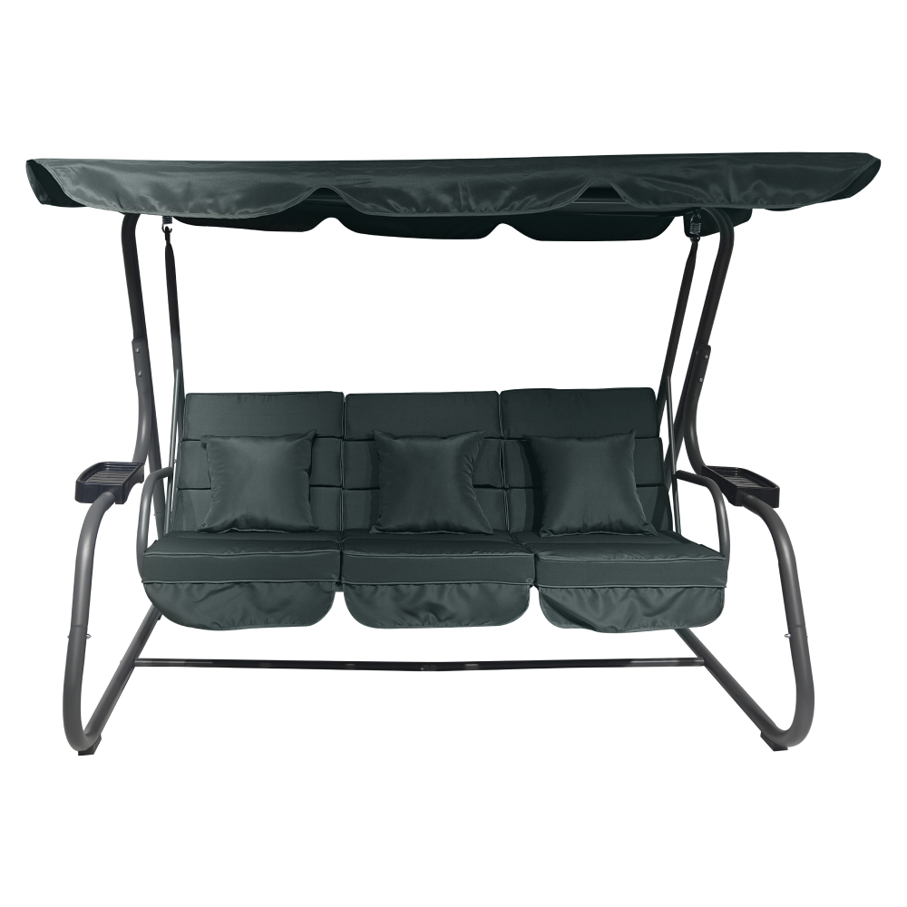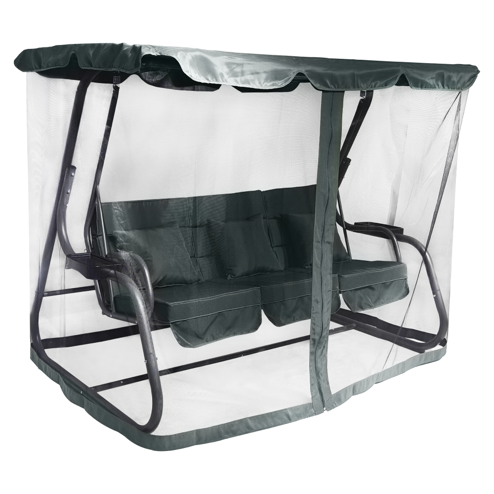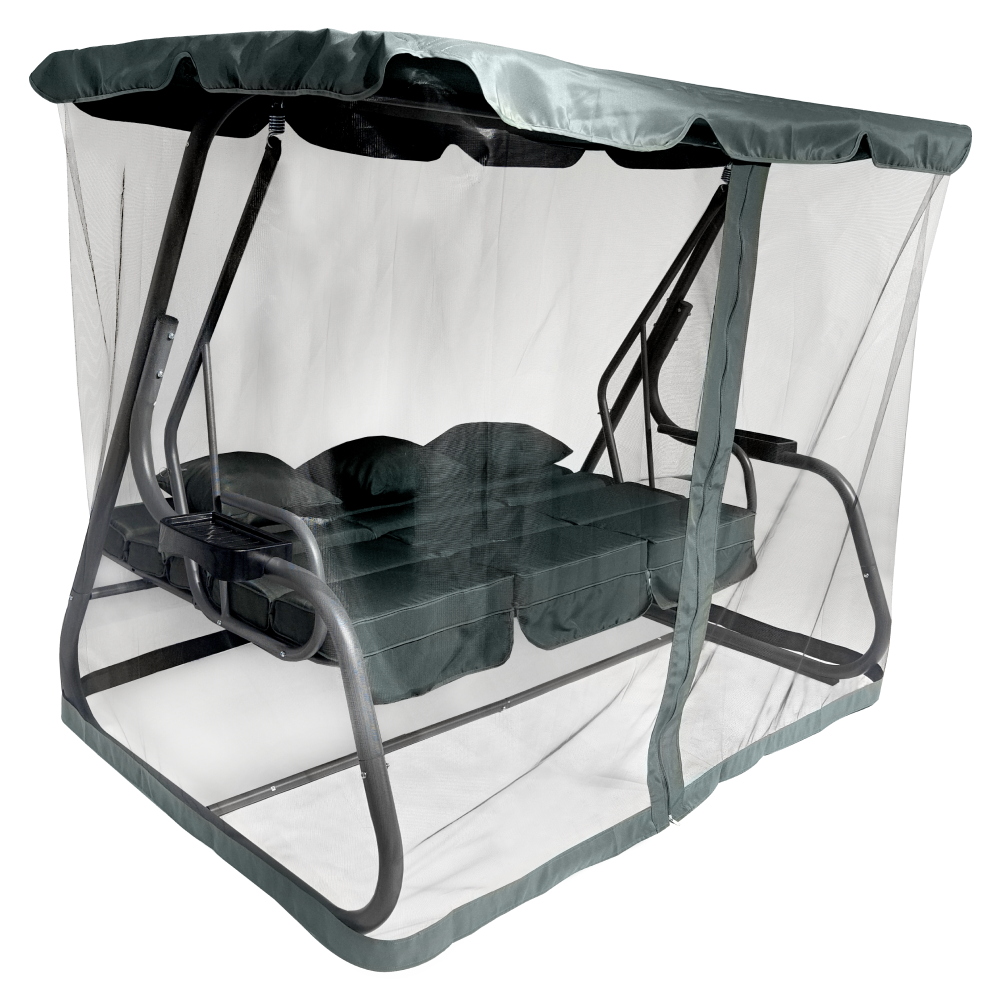Materiál: kov/polyesterová tkanina/plastFarba: tmavosiváRozmery (ŠxHxV): 221,1x130x170,3 cmVýška sedu: 47 cmHĺbka sedu: 57,5 cmŠírka sedu: 173 cmVýška chrbta: 54 cmKovová konštrukciaOdkladacie priestory na oboch stranáchMožnosť rozloženia na ležanieRozmery ležania: 108x173 cmNosnosť: 200 kg3x dekoratívne vankúšeRozmery vankúšov (ŠxV): 38,3x39 cmVodoodolné poťahyPrať ručnePoťah upevnený suchým zipsomDodávané so sieťkouZapínanie na zipsProtišmykové nožičkyDodávané so strieškouRozmery striešky (ŠxV): 221,1x130 cmBez možnosti nastavenia sklonuDodávané v demonte