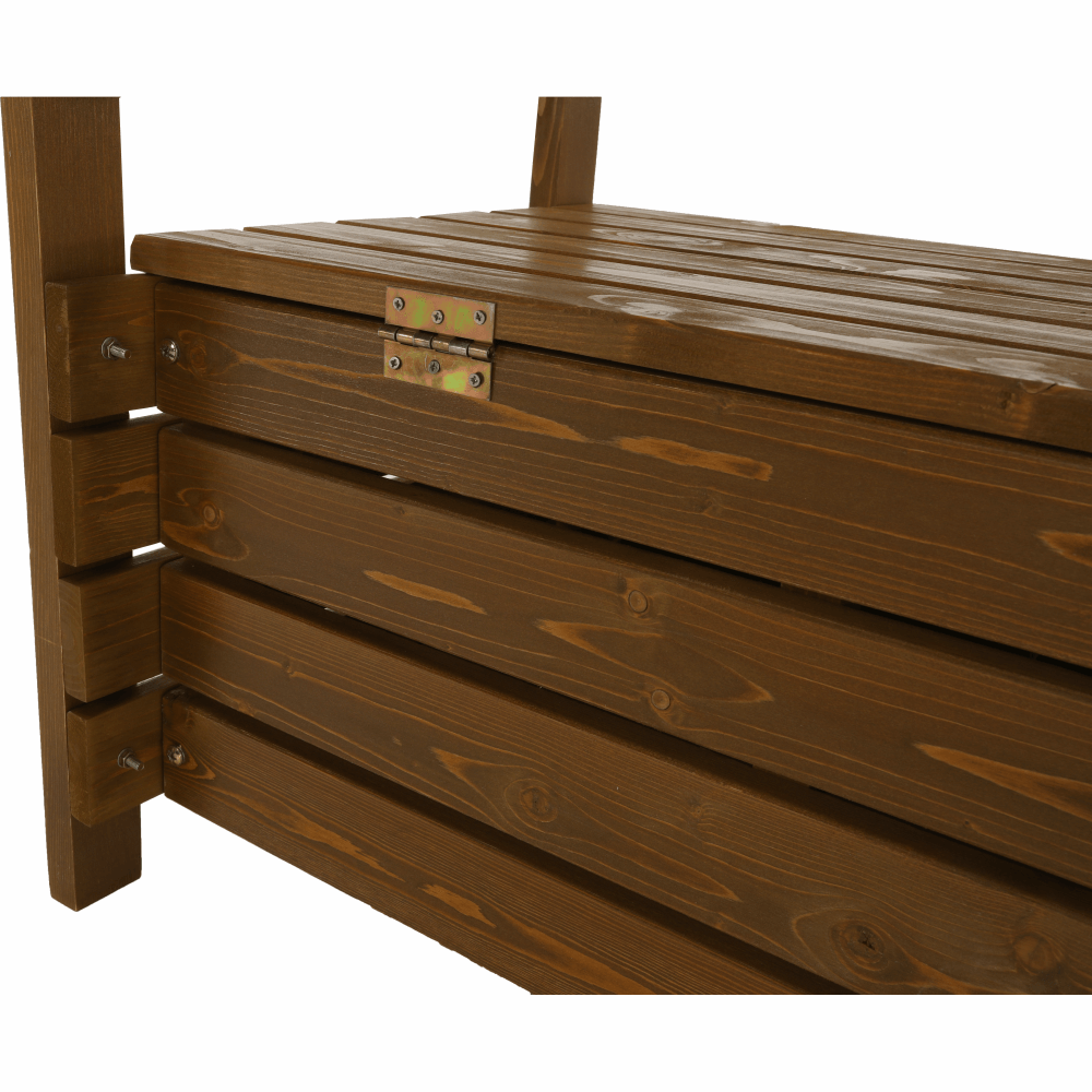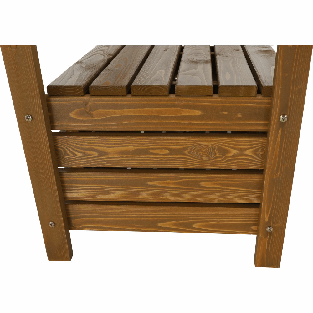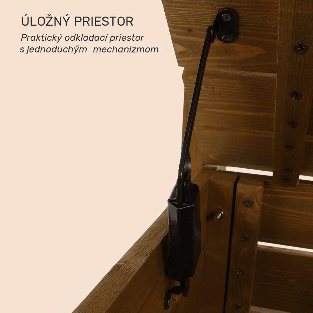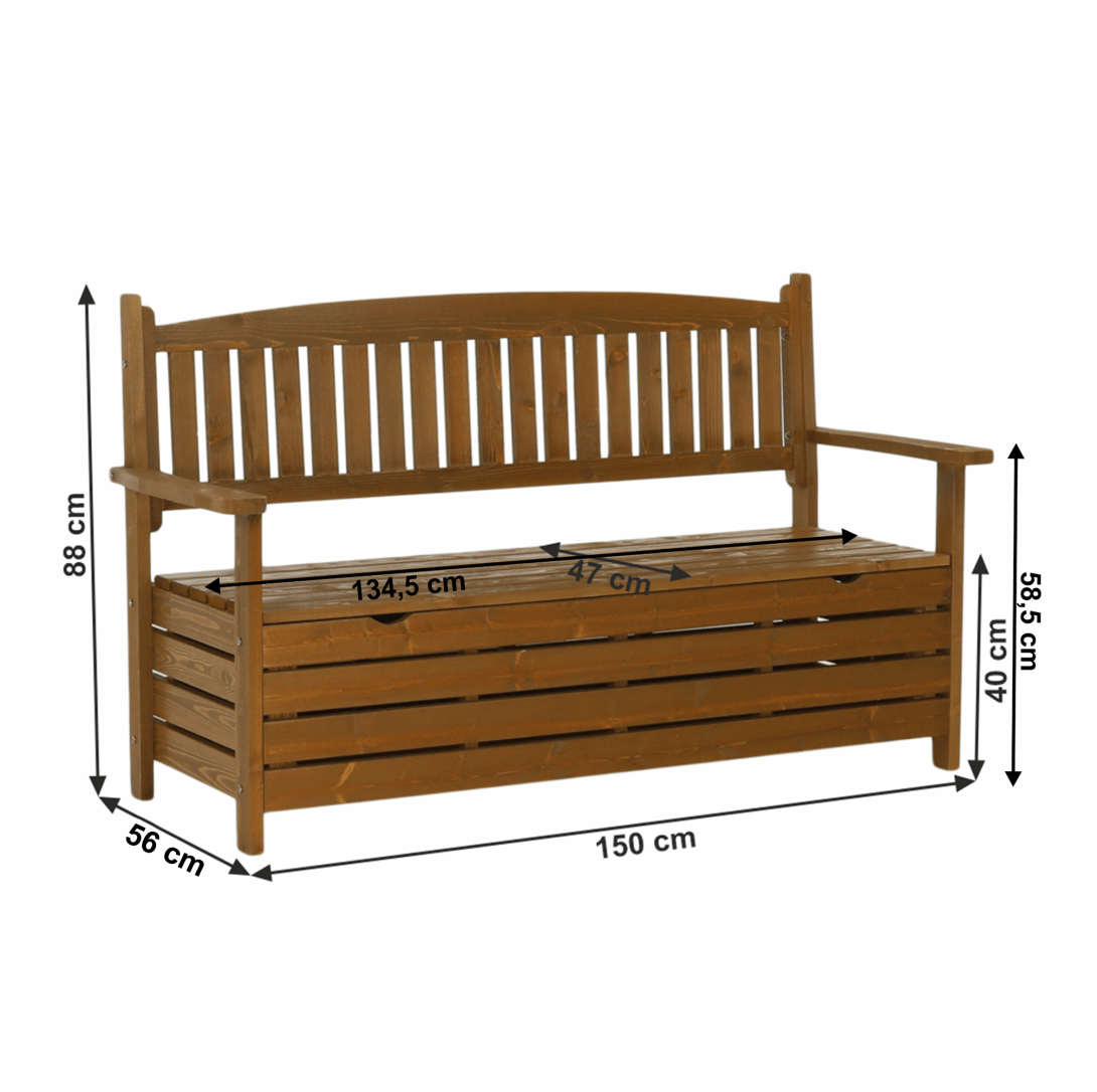 Záhradná lavička AMULAMateriál: drevoFarba: hnedáRozmery (ŠxHxV): 150x56x88 cmHĺbka sedu: 47 cmVýška sedu: 40 cmŠírka sedu: 134,5 cmVýška od zeme po opierku na ruky: 58,5 cmS úložným priestoromDodávané v demonte