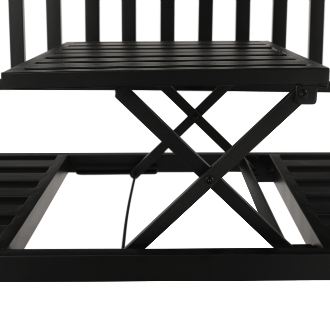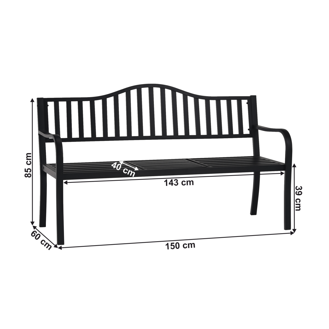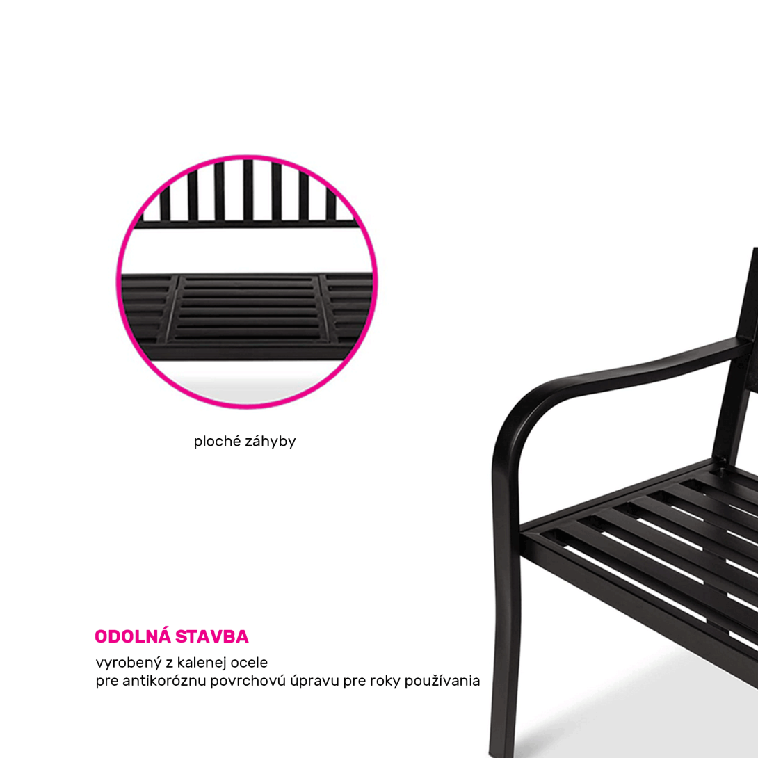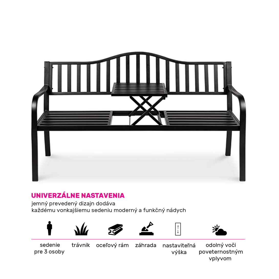 Materiál: oceľFarba: čiernaRozmery (ŠxHxV): 150x60x85 cmŠírka sedu: 143 cmVýška sedu: 39 cmHĺbka sedu: 40 cmSklápateľný stolík2-sedSo stolíkomModerný dizajnNosnosť: 170 kgDodávané v demonte