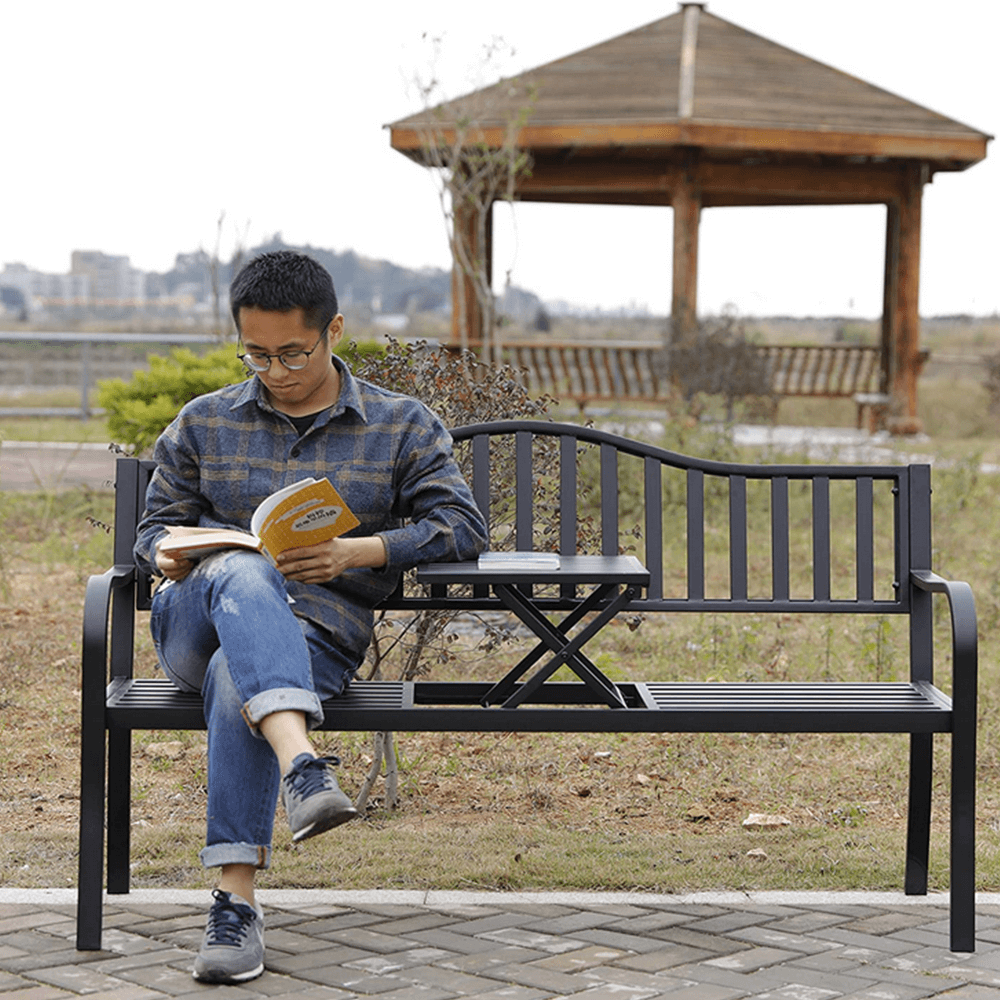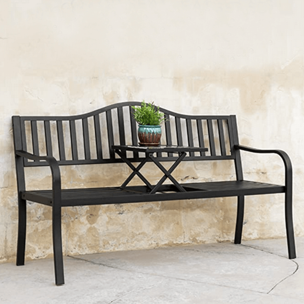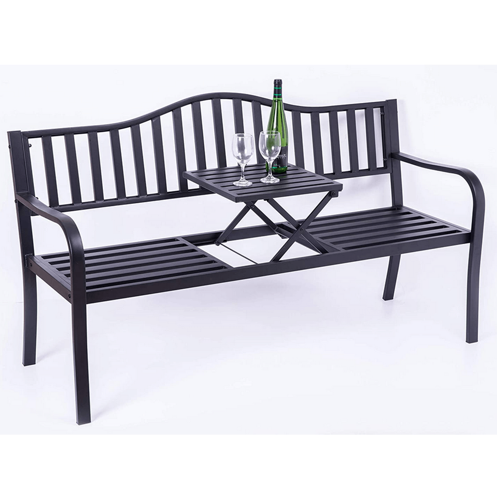 KONDELA Záhradná lavička so stolíkom, čierna, DAGNO