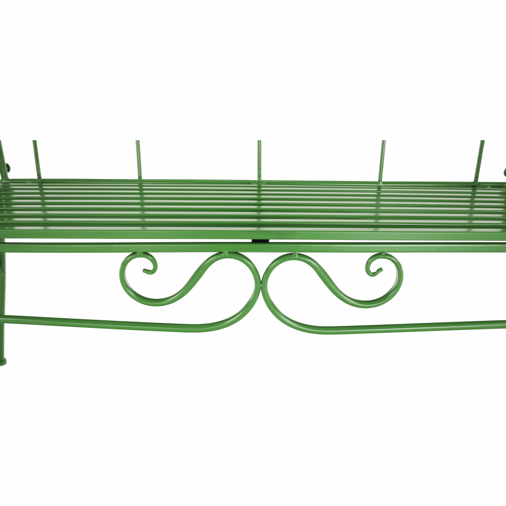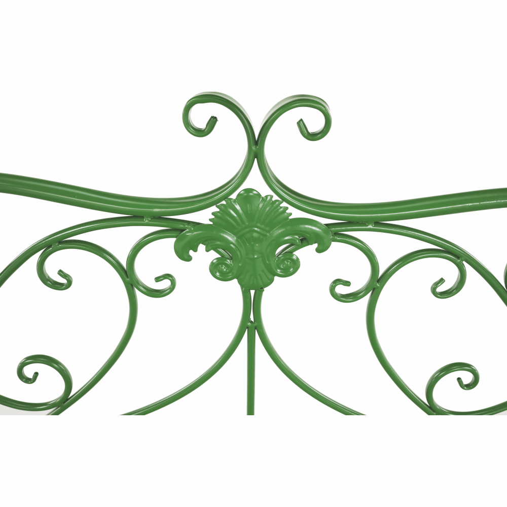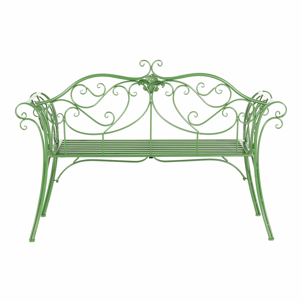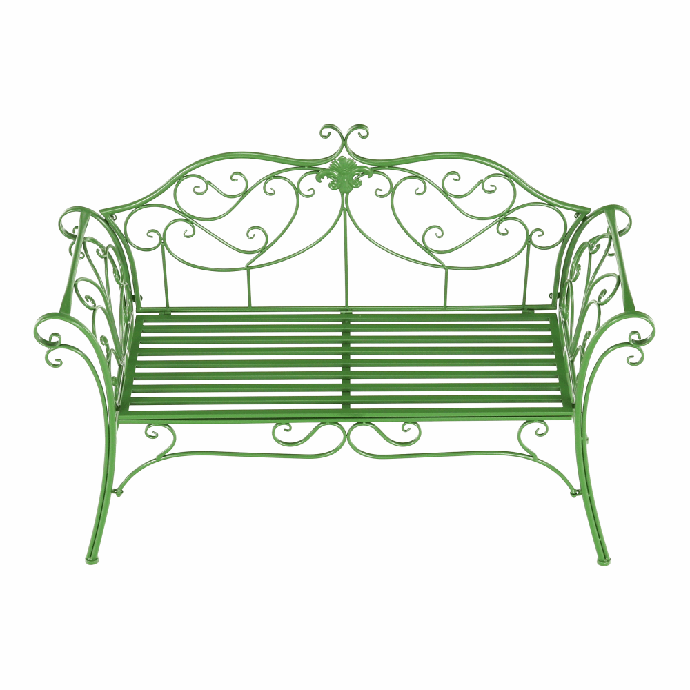 Materiál: kovFarba: zelenáRozmery (ŠxHxV): 131x49x89 cmVýška sedu: 43 cmHĺbka sedu: 42 cmŠírka sedu: 98,5 cmNosnosť: 150 kgDodávané bez vankúšovRomantický vzhľadS ozdobnými prvkamiDodávané v demonte