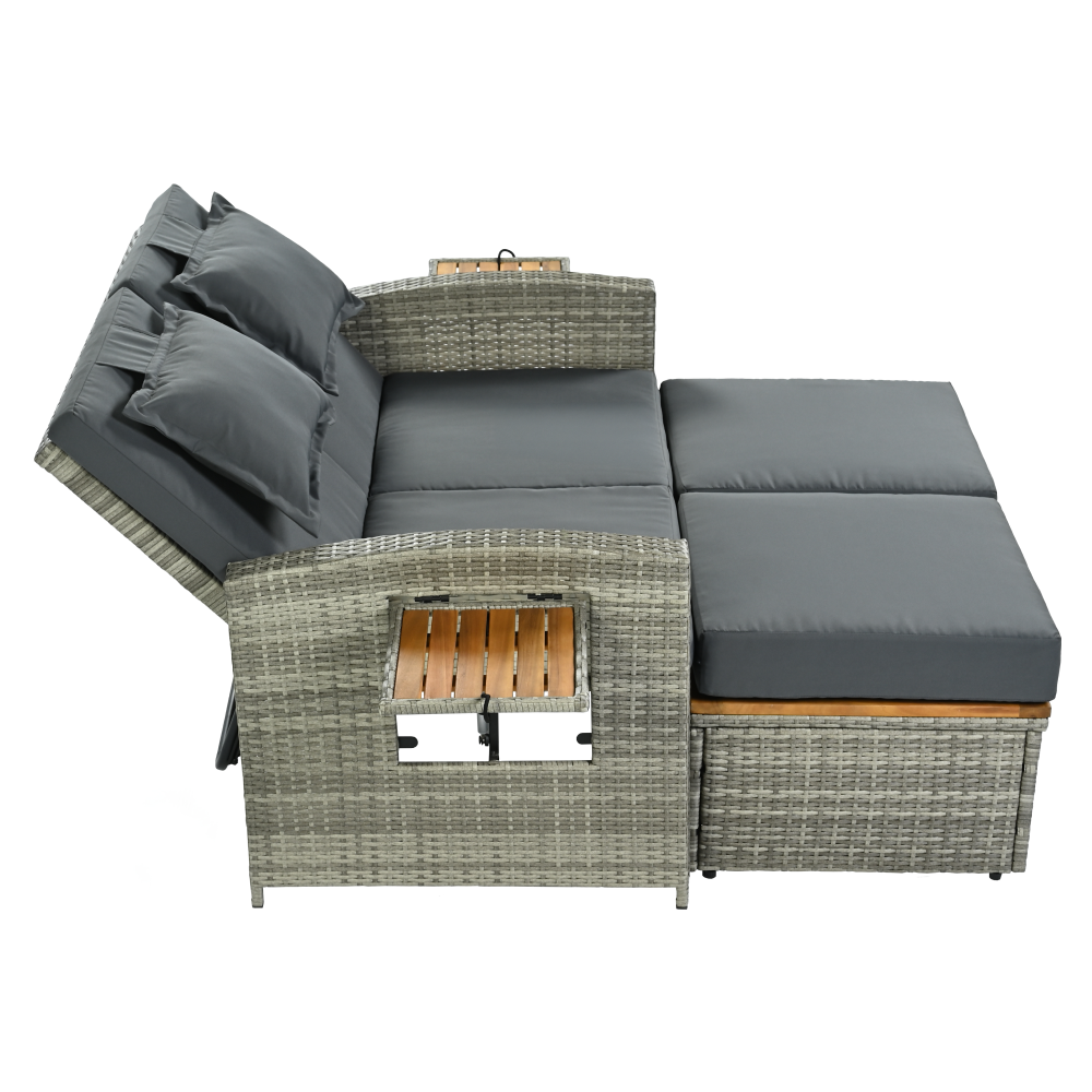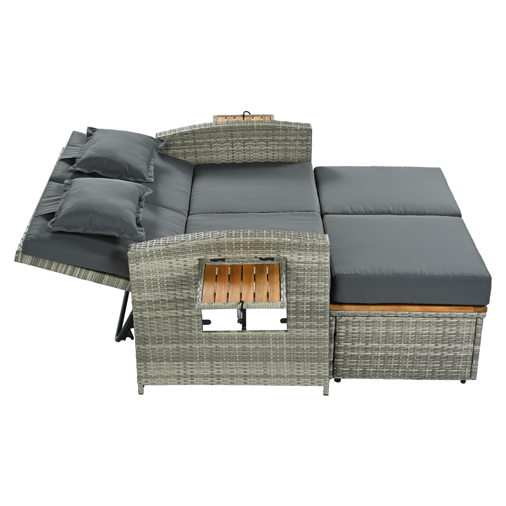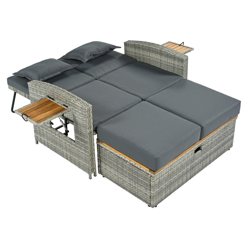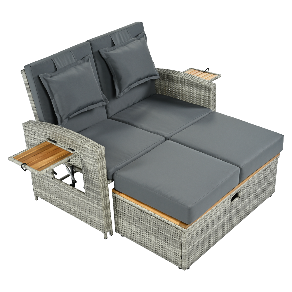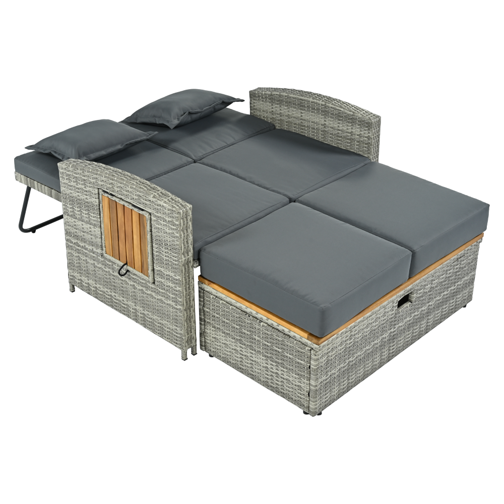 Materiál: technický ratan/oceľ/látka/akáciové drevoOderuodolnosť textílie podľa testu Martindale: 95 000 oderovFarba: sivá/prírodnáRozmery pohovka (ŠxHxV): 115x69x92 cmVýška sedu bez vankúša: 39 cmVýška sedu s vankúšom: 45 cmHĺbka sedu: 51,5 cmŠírka sedu: 103 cmRozmery lavica (ŠxHxV): 99x55,5x33 cmVýška sedu bez vankúša: 33 cmVýška sedu s vankúšom: 45 cmRozmery sklopeného stolíka (ŠxH): 29x29 cmVýška chrbta bez vankúša: 35 cmVýška chrbta s vankúšom: 29 cmŠírka chrbta: 103 cmRozmery rozloženia (ŠxD): 103x170 cmVýška opierky na ruku: 65 cmNosnosť: 130 kgHmotnosť: 32 kg2-dielna súpravaPohovkaLavica2x sklápacie príručné stolíkyPolohovacia opierka chrbta4 pozície sklápania opierky chrbtaS opierkami rúkDodávané s vankúšmiSnímateľný a vodoodolný poťahPoťahy je možné prať pri teplote 30 °CPoťahy nesušte v sušičke, nebieľte, nečistite chemicky a nežehliteOtváranie veka lavice pomocou hydraulického piestuVhodná na záhradné náradie, hračky, vankúše, deky, sedenieLavicu je možné zasunúť pod pohovkuVšestranné využitieModerný dizajnPrírodný dizajnVhodný do exteriéruOdolný voči poveternostným podmienkamOdporúčame výrobok chrániť pred nepriaznivými poveternostnými podmienkami, aby sa predĺžila životnosť výrobkuDodávané v demonte