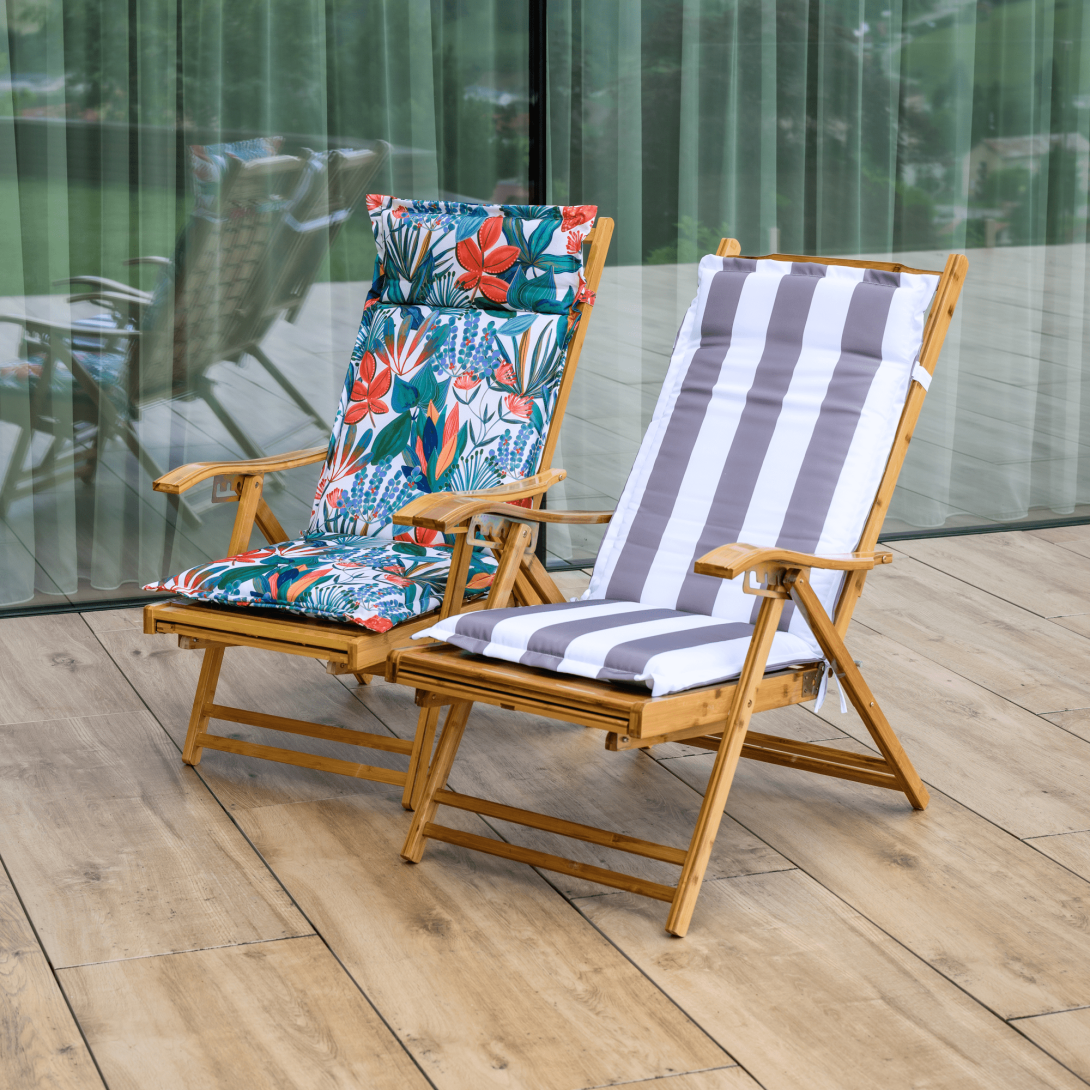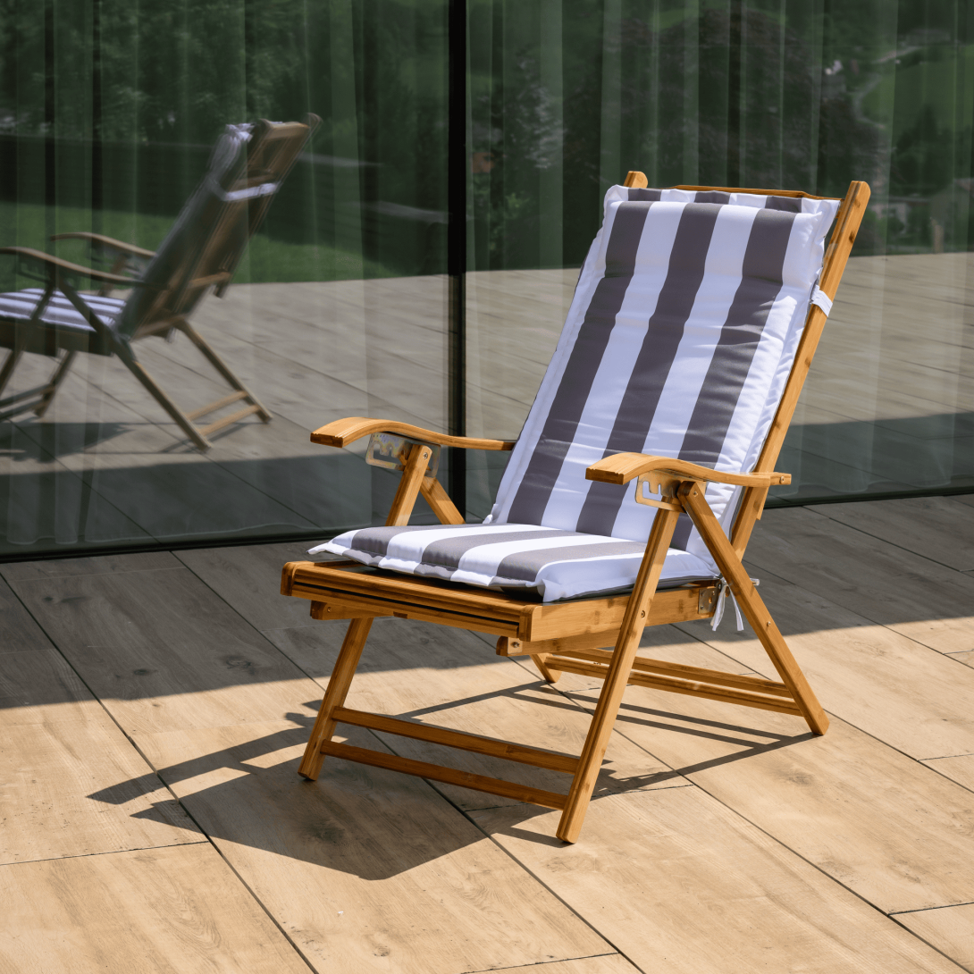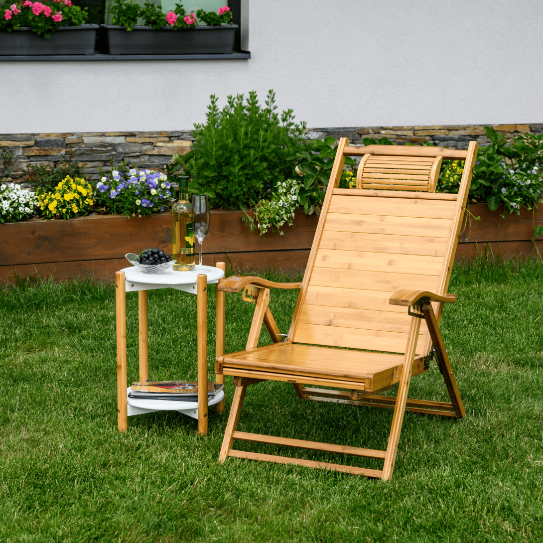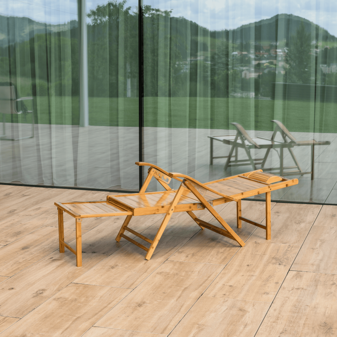 Materiál: masívne bambusové drevoFarba: prírodnáRozmery (ŠxHxV): 55x95-176x55-107 cmVýška sedu: 36 cmHĺbka sedu: 52 cmŠírka sedu: 55 cmVýška chrbtovej opierky: 82 cmŠírka chrbtovej opierky: 55 cmNosnosť: 100 kgHmotnosť: 13 kgZáhradnéSkladaciePolohovacie5 úrovní polohovaniaOpierka hlavyS opierkami rúkKresloLežadloS výsuvnou podnožouRozmery podnož (ŠxH): 42x42 cmPraktickéModerný dizajnDodávané v monte