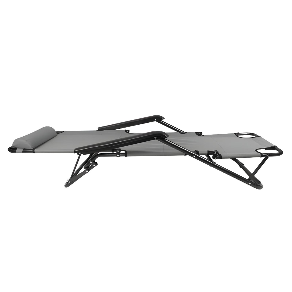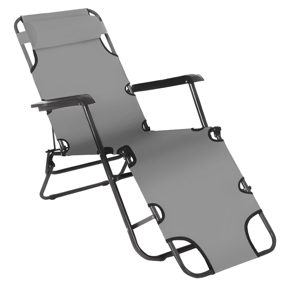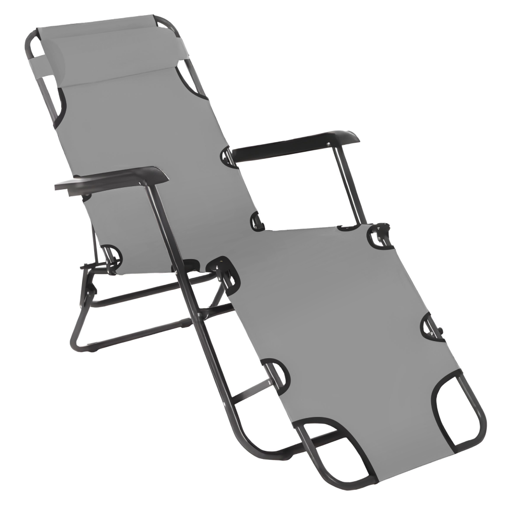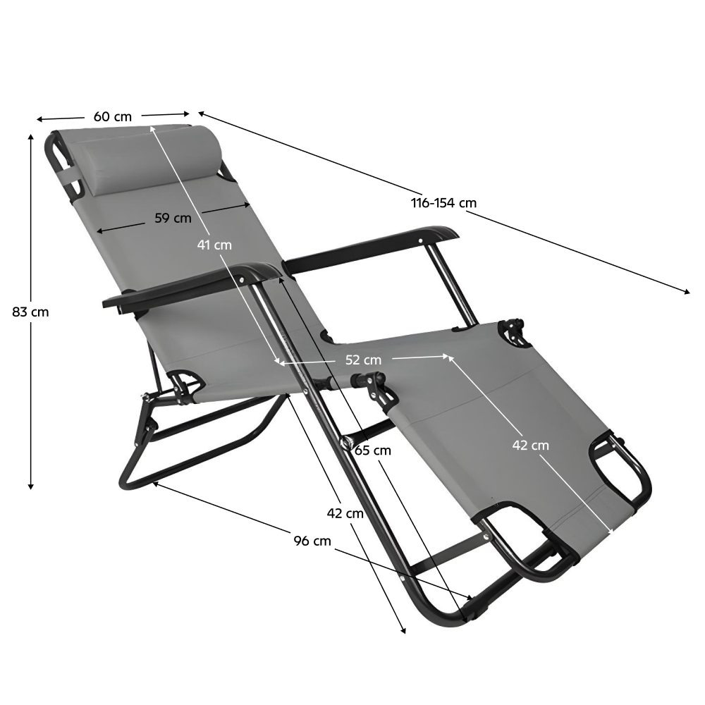 Materiál: oceľ/látka OxfordOderuodolnosť látky podľa testu Martindale: 7 600 oderovFarba: siváRozmery (ŠxHxV): 60x116/154x83 cmVýška sedu: 42 cmHĺbka sedu: 52 cmŠírka sedu: 59 cmVýška chrbtovej opierky: 41 cmŠírka chrbtovej opierky: 59 cmVýška opierky na ruku od zeme: 65 cmNosnosť: 100 kgHmotnosť: 4,2 kgZáhradnéSkladacieOpierka hlavyS opierkami rúkMožné rozložiť na ležadloVodoodolná tkaninaPraktickéModerný dizajnDodávané v monte