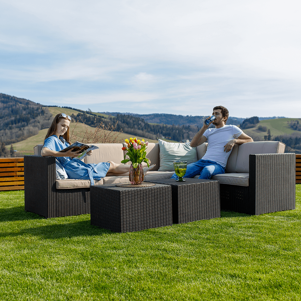KONDELA Záhradný 3-dielny ratanový set, hnedá/béžová, RODEN