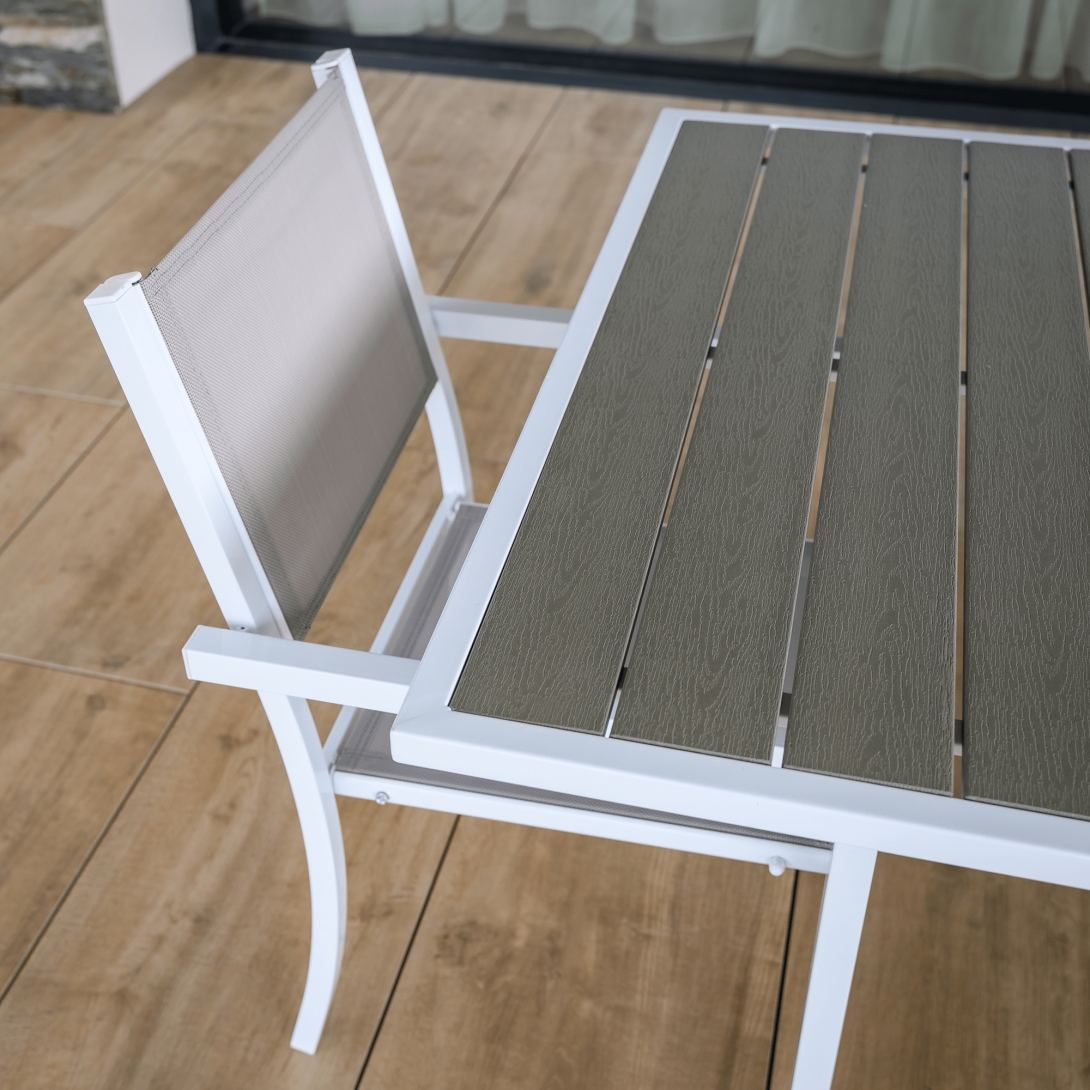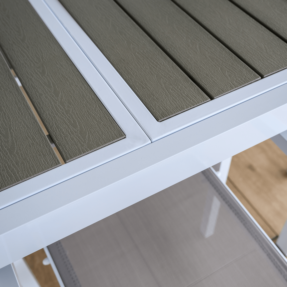 Materiál: oceľ/polywoodPrevedenie: biela/siváRozmery (ŠxHxV): 100/200x100x75 cmNosnosť: 35 kgJednoduchýRozkladacíPre 4-8 ľudí ZáhradnýModerný dizajnDodávané v demonte