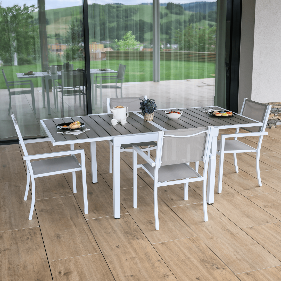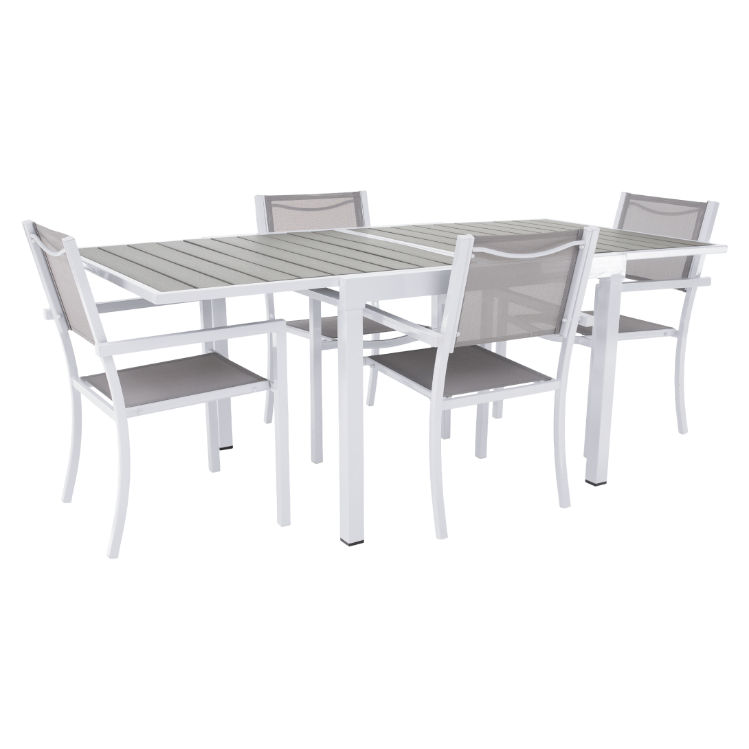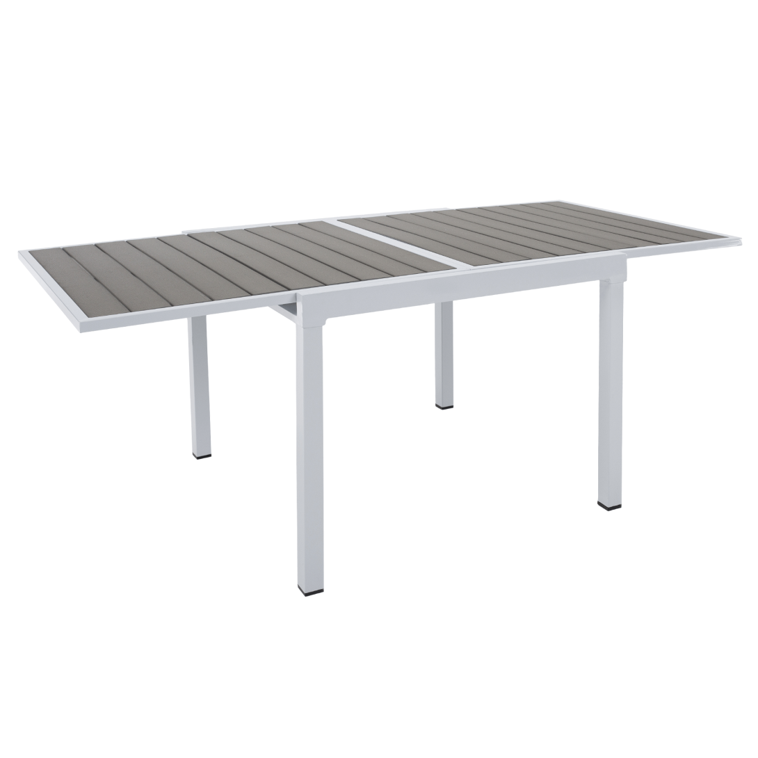 KONDELA Záhradný rozkladací stôl, biela oceľ/sivá, DORIO