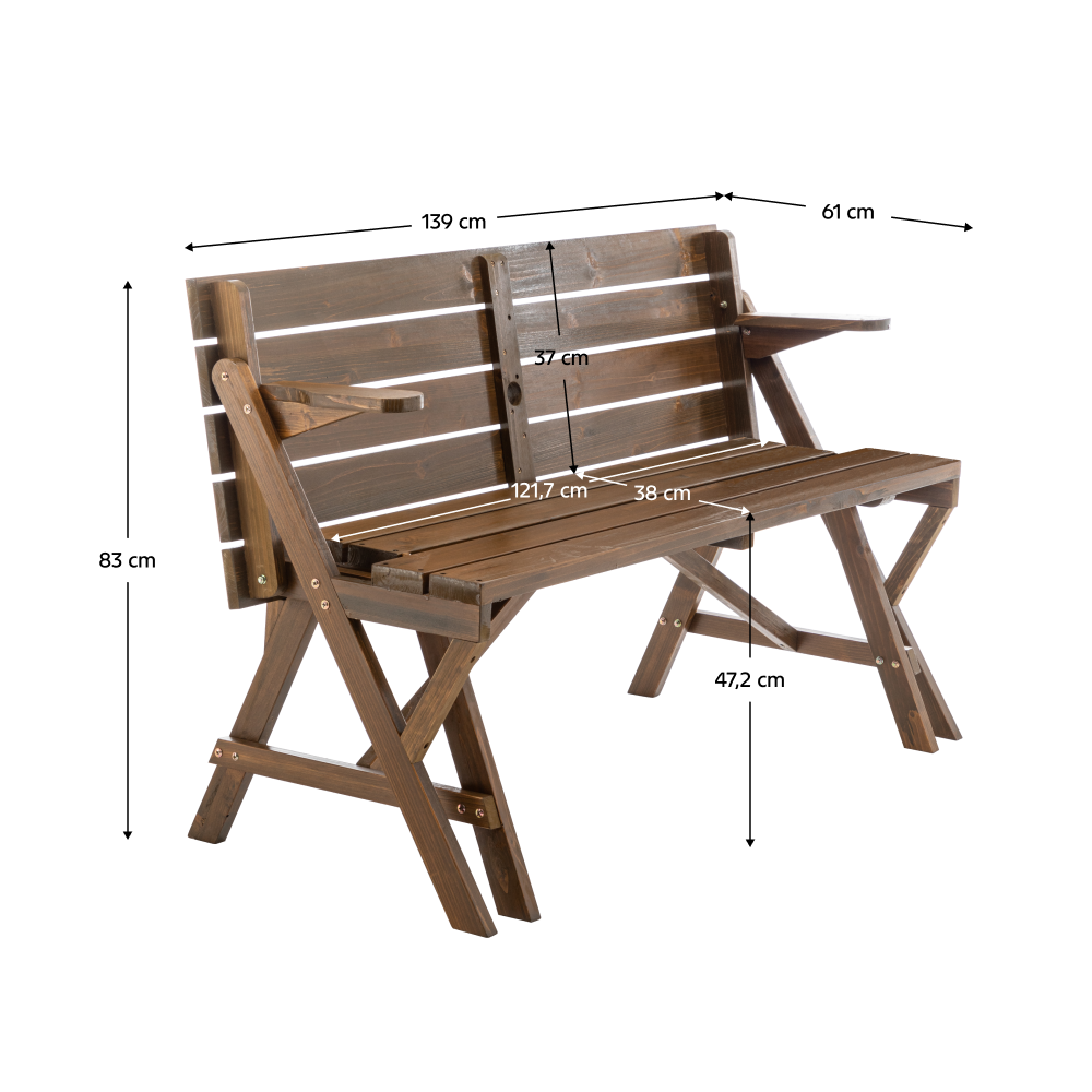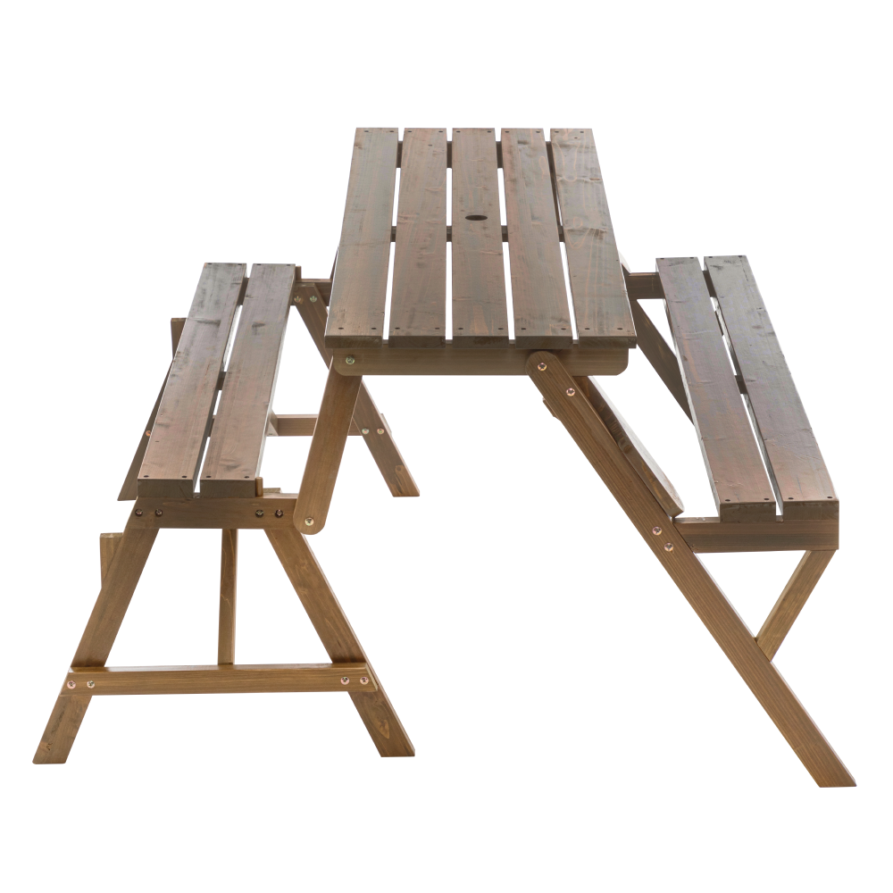 KONDELA Záhradný stôl/lavička, 2v1, hnedá, ZAGIR