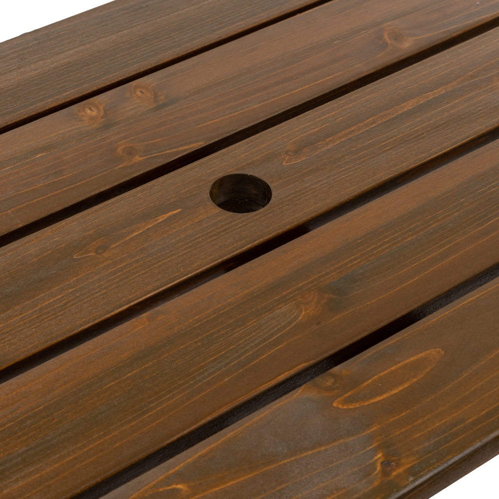 Materiál: borovicové drevoFarba: hnedáRozmery stôl s lavicami (ŠxHxV): 139,5x133,5x73 cmRozmery lavička (ŠxHxV): 139x61x83 cmVýška sedu: 47,2 cmHĺbka sedu: 38 cmŠírka sedu: 121,7 cmVýška chrbta: 37 cmS otvorom na slnečníkPriemer otvoru na slnečník: 3,9 cmOdolný voči poveternostným podmienkamOdporúčame výrobok chrániť pred nepriaznivými poveternostnými podmienkami, aby sa predĺžila životnosť výrobku.Nosnosť stola: 20 kgNosnosť lavice:90 kgNosnosť lavičky: 200 kgMultifunkčnýNa záhradu alebo terasuPrírodný dizajnDodávané v demonte