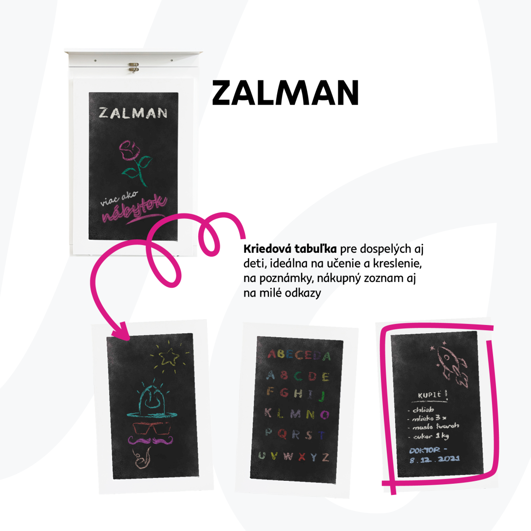 KONDELA ZALMAN SKLADACI STOL NA STENU, S KRIEDOVOU TABULOU, BIELA
