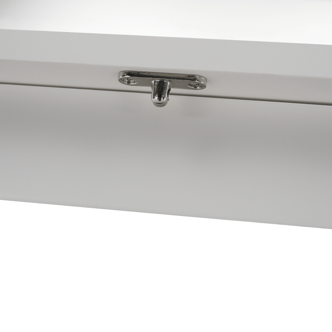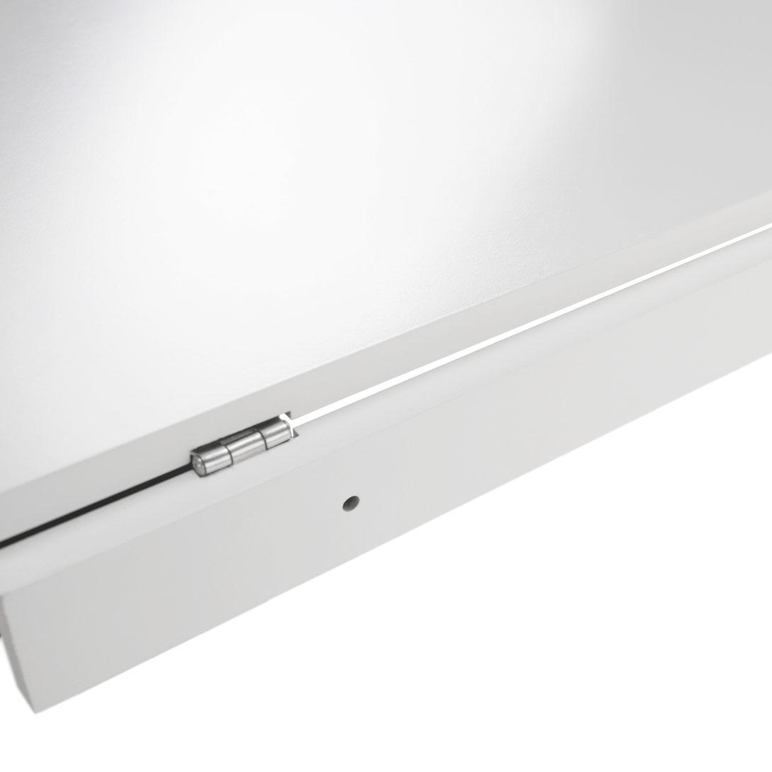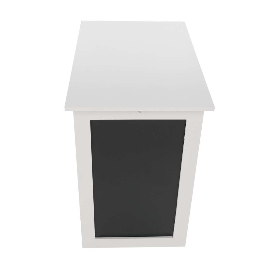 Materiál: MDF/kriedová tabuľaFarba: biela/čiernaRozmery zloženého stolíka (ŠxHxV): 50x8x87,5 cmRozmery rozloženého stolíka (ŠxHxV): 50x75,5x75 cmCelková šírka kriedovej tabule: 33,8 cmCelková dĺžka kriedovej tabule: 61,7 cmHrúbka dosky s tabuľou: 1,8 cmHrúbka vrchného plátu: 1,5 cmNosnosť: 18 kgSkladací stôl na stenuViacúčelový písací stôlMinimalistický dizajnTabuľa vhodná na písanie kriedouTabuľa nie je magnetickáVhodný do detskej izby aj pracovneVhodný aj do jedálne a obývačkyJednoduchý systém rozloženiaSo zaisťovacou západkouDodávaný v demonte